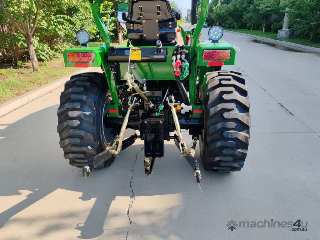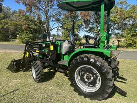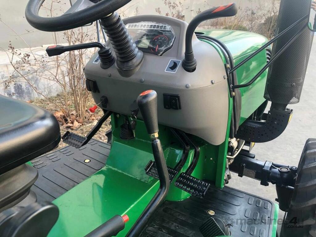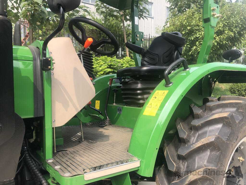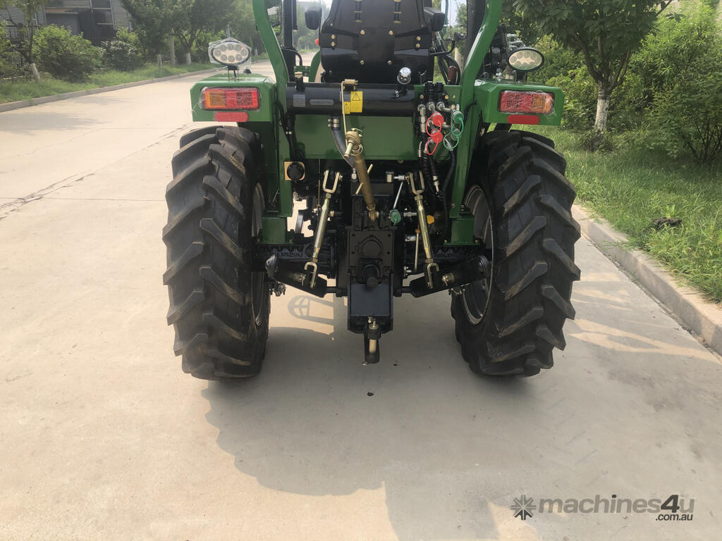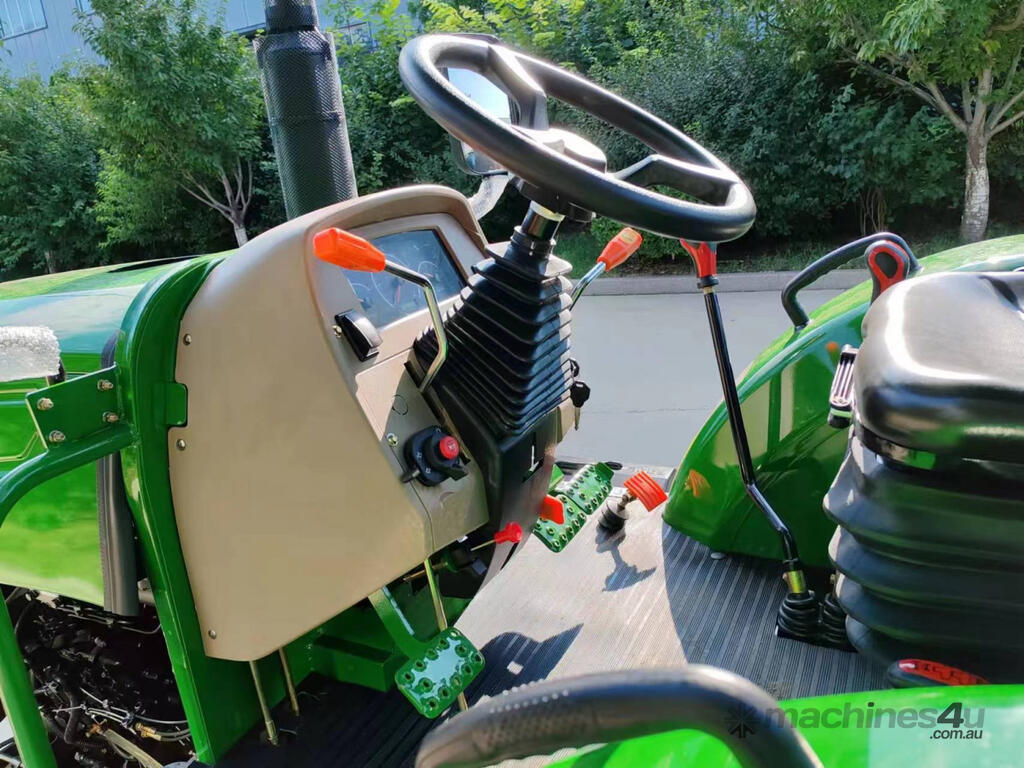 AgKing AK404 40HP tractor with 8 speed gear box, shuttle shift, diff lock, ROPS with wide shade cover, two sets of remote hydraulics, swing draw bar and tool box. Fitted with 4 cylinder diesel engine and Agricultural tyres.