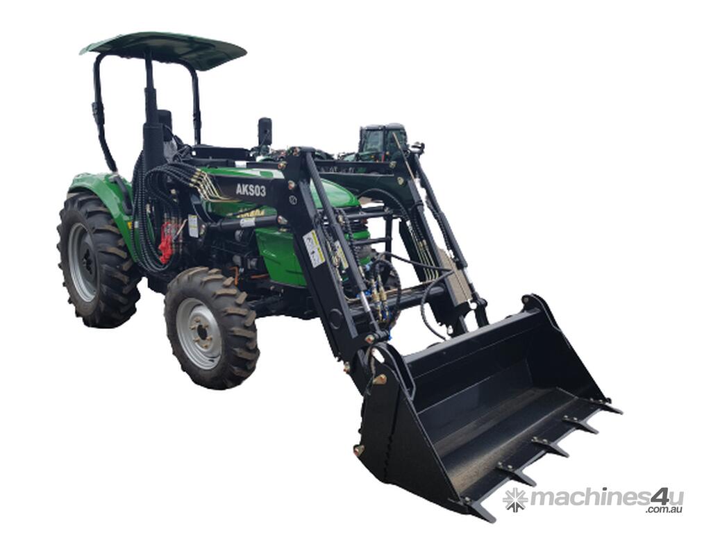 The AK404 40HP tractor featuring 4WD, shuttle shift with 8 fwd and reverse gears, power steering and is suitable for a wide range of tasks with various implement attachments available. It is fitted with a heavy duty front end loader and quick release 4×1 bucket making these 40HP tractors, perfect for general purpose use, specially for slashing or any PTO work.