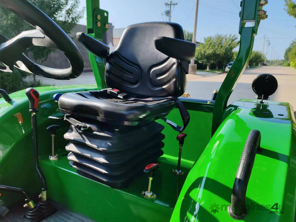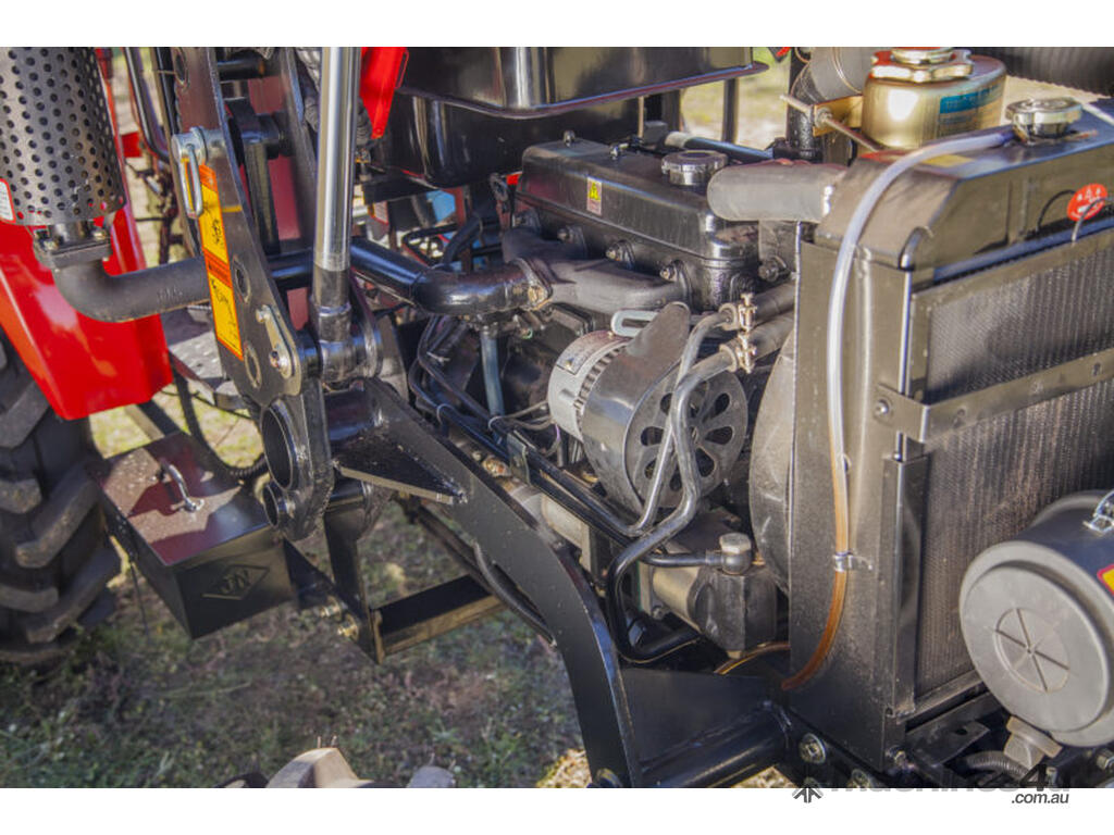 AgKing AK404 40HP tractor with 8 speed gear box, shuttle shift, diff lock, ROPS with wide shade cover, two sets of remote hydraulics, swing draw bar and tool box. Fitted with 4 cylinder diesel engine and Agricultural tyres.