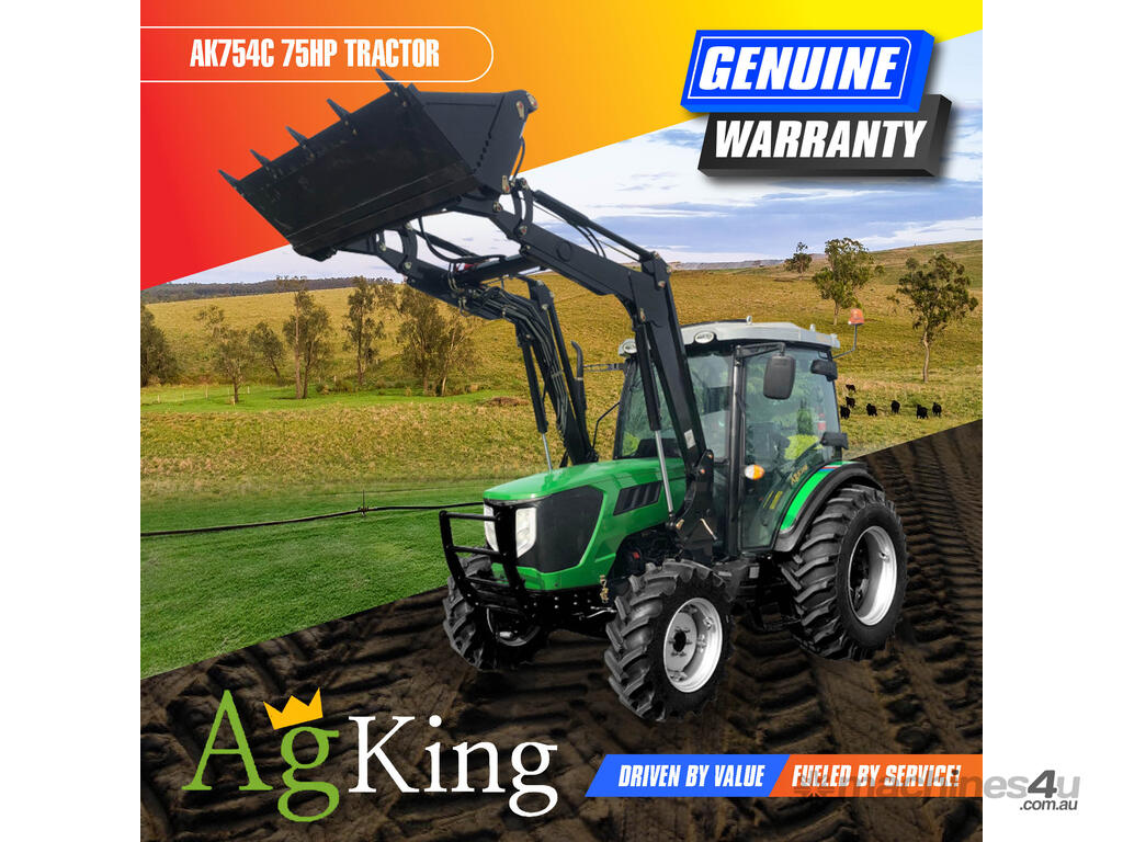 AgKing’s 75HP Tractors AK754C are the latest release of quality engineered tractors specifically designed for Australia. We have combined power and reliability with all the features needed to get serious work done at a fraction of the cost. If you need maneuverability to negotiate tight places and the weight and traction to push, pull, lift and load then this Tractor is one to consider.