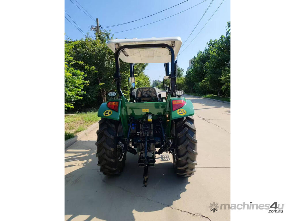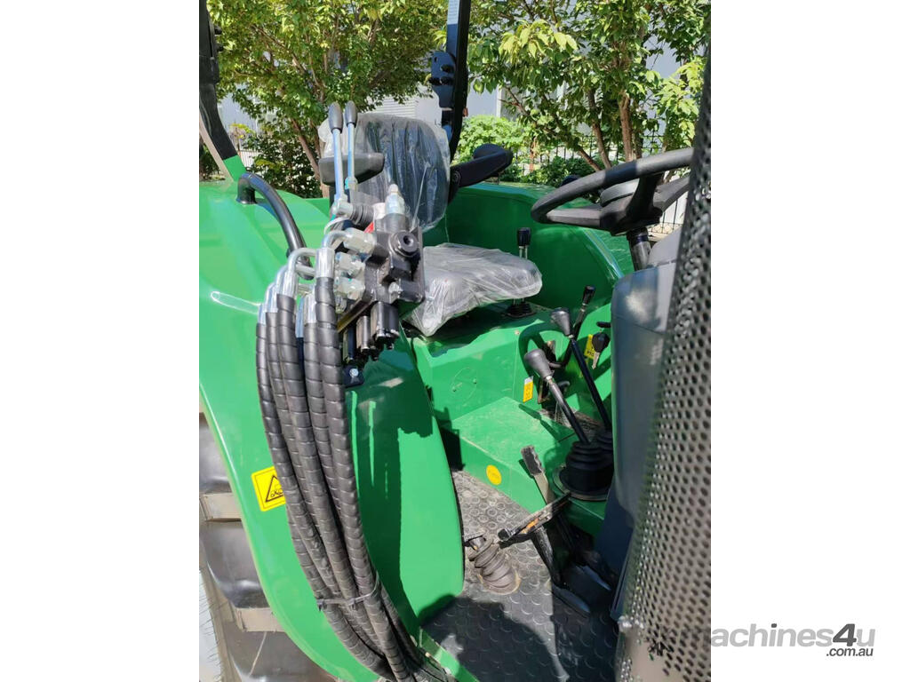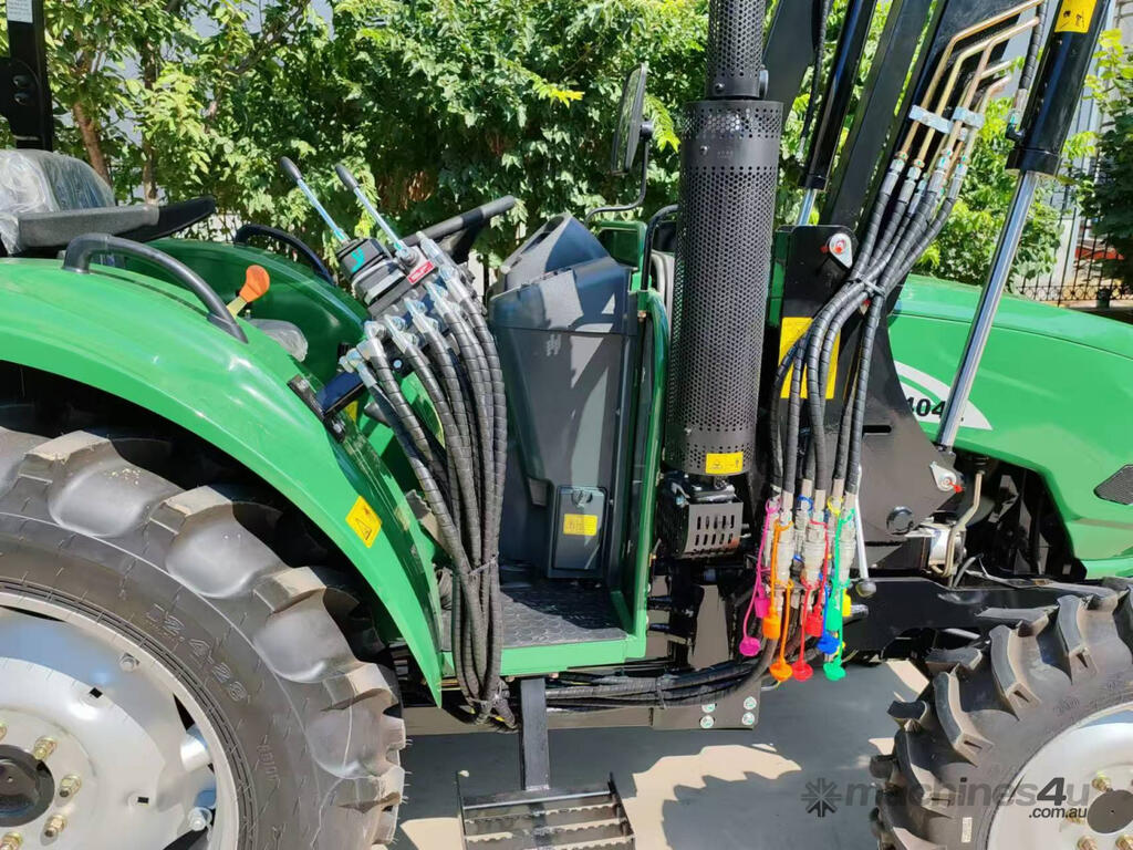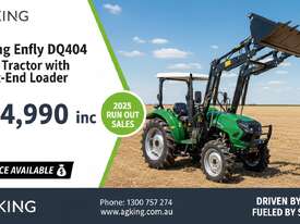 The 40HP Enfly Tractor DQ404 is a 4cyl diesel tractor, with ROPS and shade canopy, 4 wheel drive, shuttle shift, power steering, wet disc brakes, diff lock, 2 sets remote hydraulic valves, swing bar, 2 speed PTO.