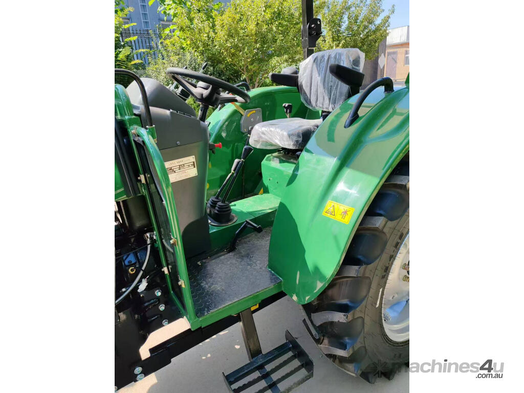 The 40HP Enfly Tractor DQ404 is a 4cyl diesel tractor, with ROPS and shade canopy, 4 wheel drive, shuttle shift, power steering, wet disc brakes, diff lock, 2 sets remote hydraulic valves, swing bar, 2 speed PTO.