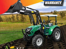 The DQ554 55HP Tractor series is an ideal step up where extra power is required. Fitted with 3 point linkage: system, 2 speed PTO, dual stage clutch, shuttle shift, diff lock, extra 4-way valve for hydraulic implements, swinging draw bar, ROPS and canopy.The rugged 8 x 8 transmission easily handles power distribution to the 4 wheel drive. With a powerful hydraulic system this machine can lift 1.1 tonne at the rear lift arms and can comfortably lift 650kg in a standard Front End Loader with 4 in 1 bucket.