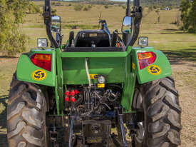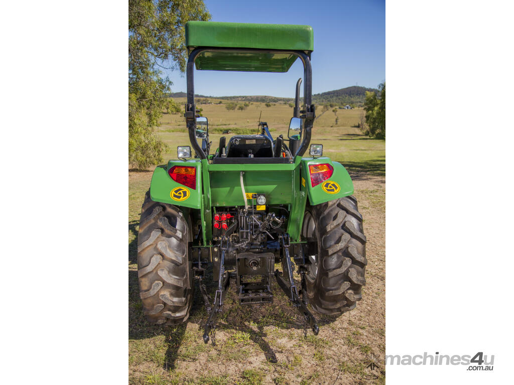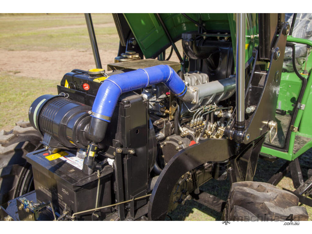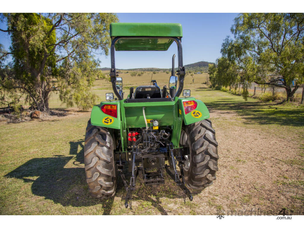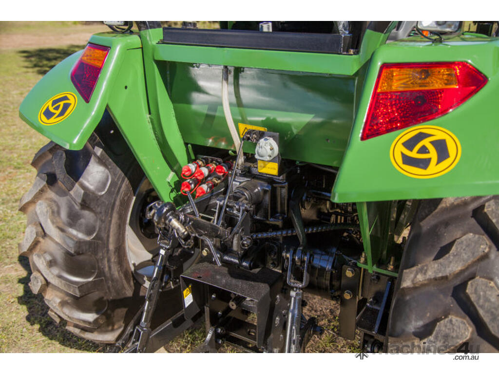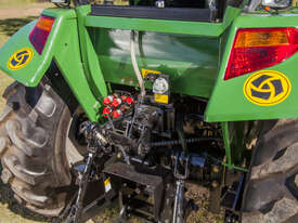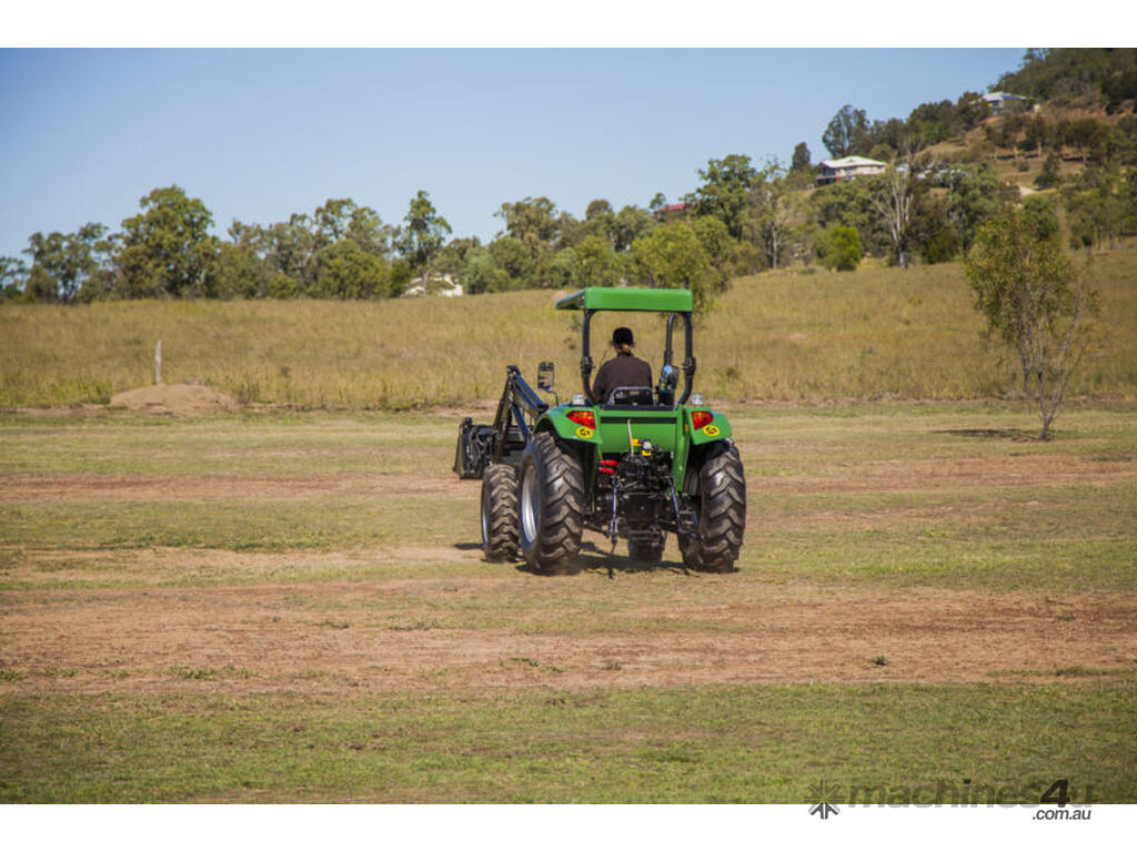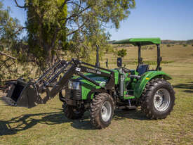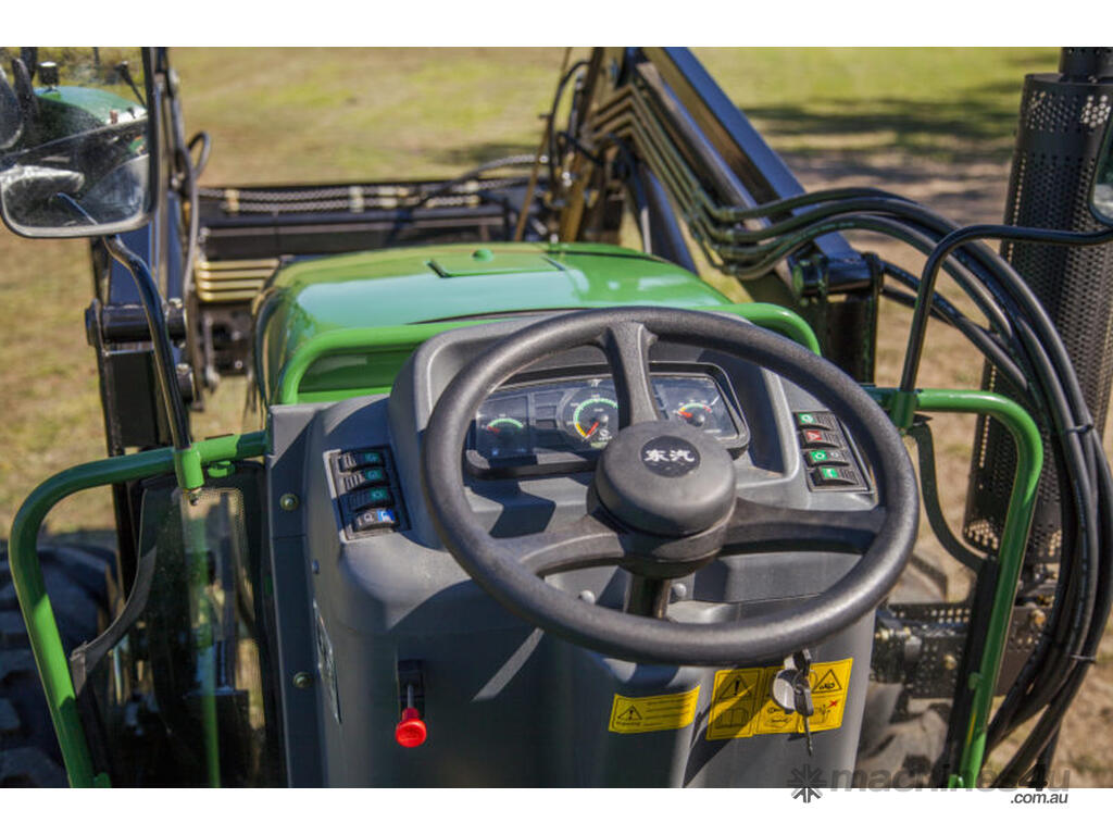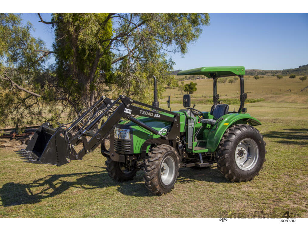 The DQ554 55HP Tractor series is an ideal step up where extra power is required. Fitted with 3 point linkage: system, 2 speed PTO, dual stage clutch, shuttle shift, diff lock, extra 4-way valve for hydraulic implements, swinging draw bar, ROPS and canopy.The rugged 8 x 8 transmission easily handles power distribution to the 4 wheel drive. With a powerful hydraulic system this machine can lift 1.1 tonne at the rear lift arms and can comfortably lift 650kg in a standard Front End Loader with 4 in 1 bucket.