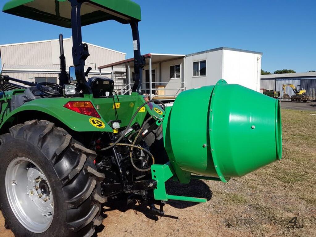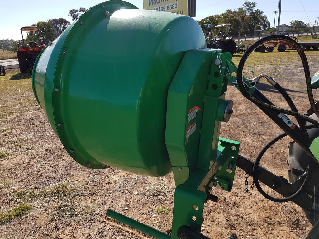 Tractor Cement mixer (5 cubic feet) fitted with tractor 3 point mount and PTO drive shaft and cat hitch pins. Includes top link arm and hydraulic tilt ram.