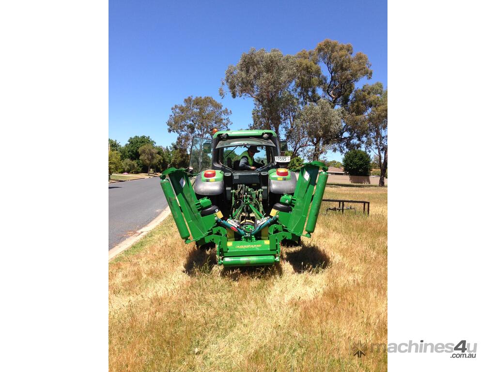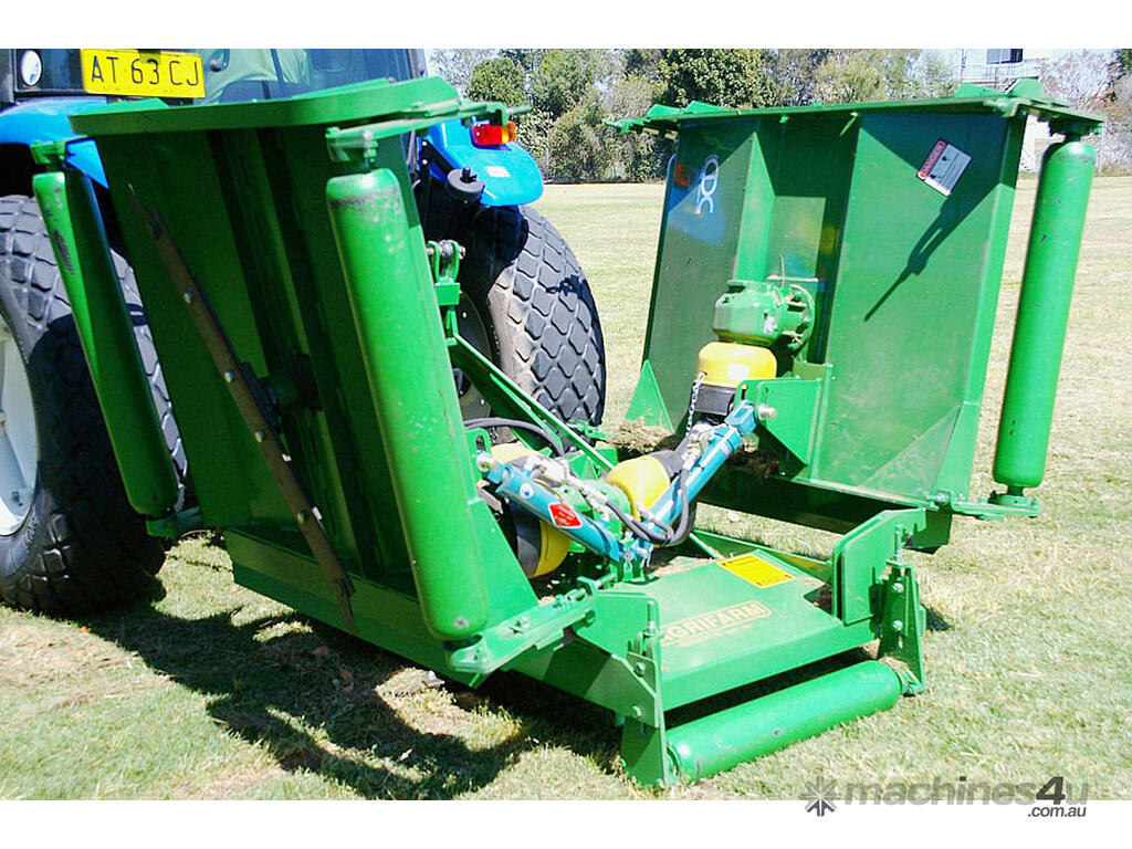 Three body section finishing mower designed to float independently on height rollers and follow the ground contour. Suitable for mowing large areas, i.e. parks, ovals and turf farms.