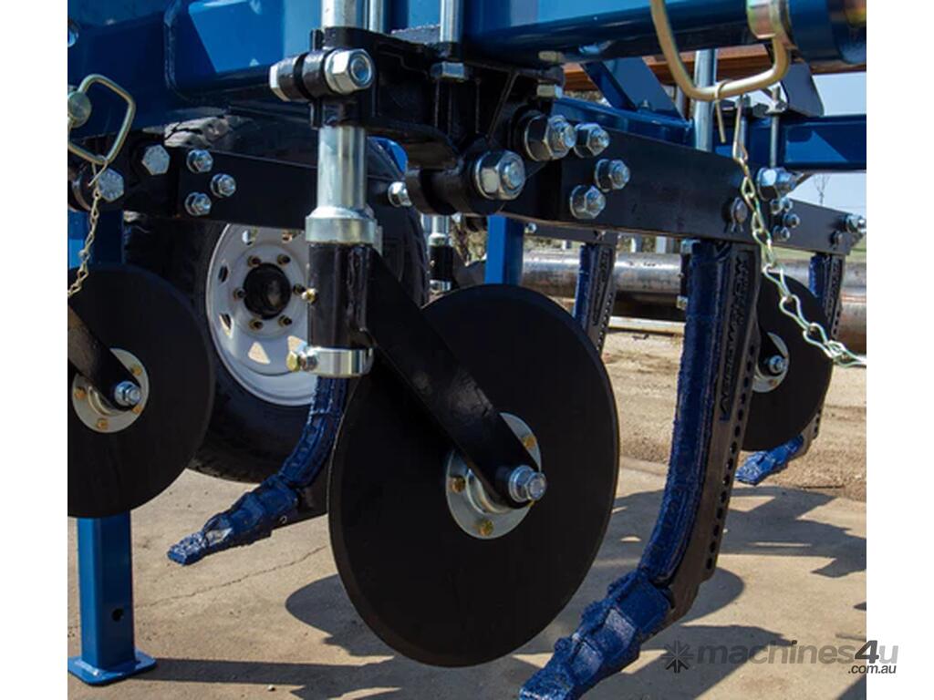 The AP31 is available with 330, 500, or 750 mm shank spacings. It has a CAT3 three-point linkage hitch and a 100 x 100 x 9 mm RHS steel frame for long-lasting performance in Australia's tough conditions. A rear tow hitch with optional hydraulic lines can fitted to the plough for towing trailing implements. With the #8-9 hybrid shank assembly, the AP31 supports shank options such as coulters, fertiliser tubes, furrowers, inclusion plates, mulch blades and sweeps.