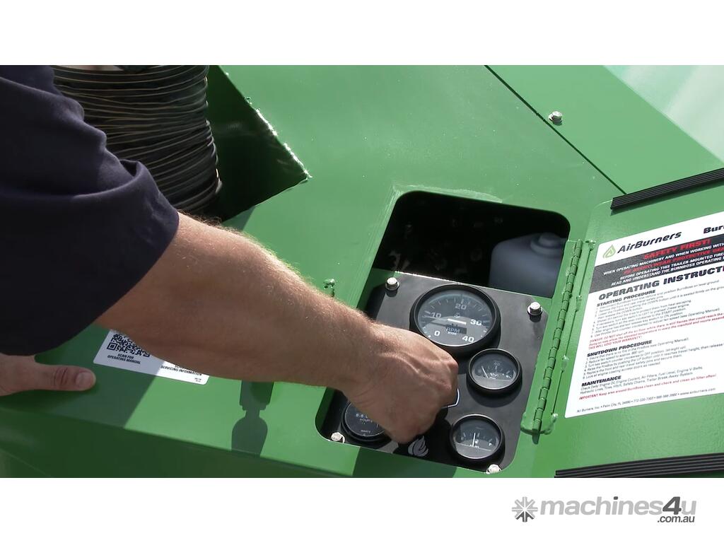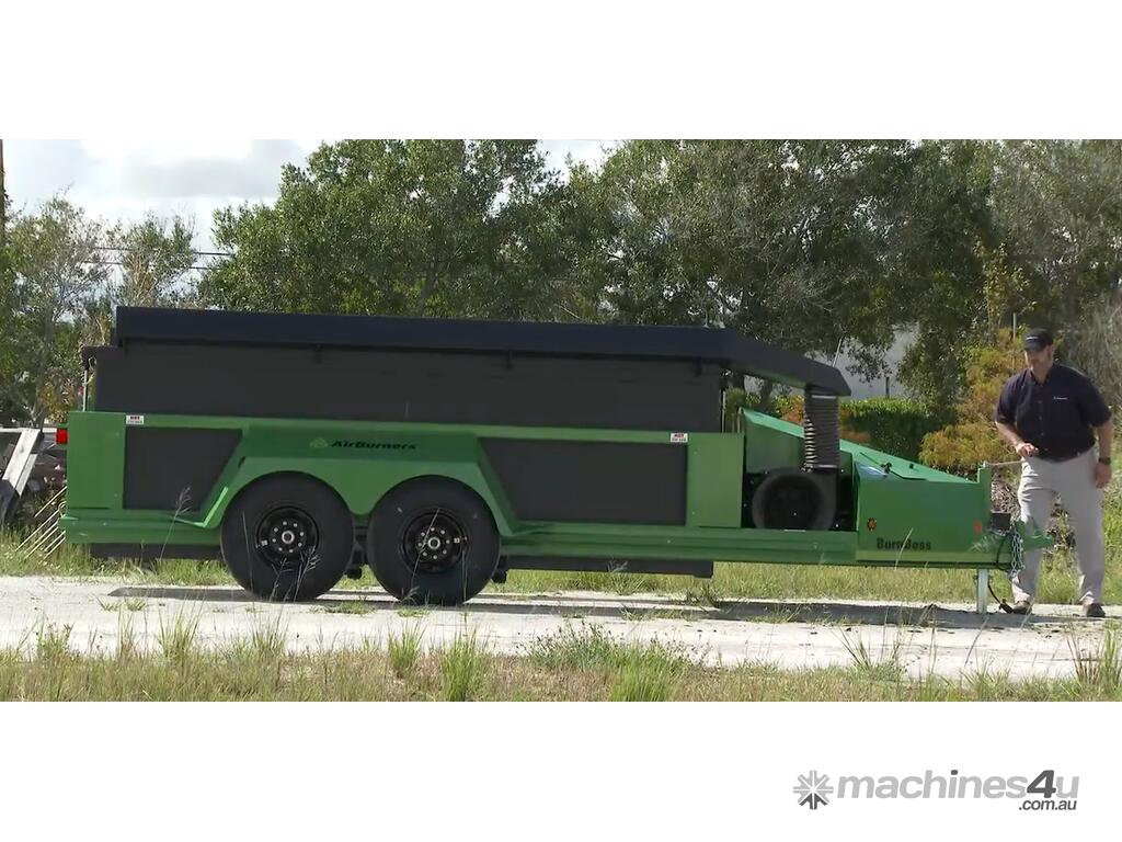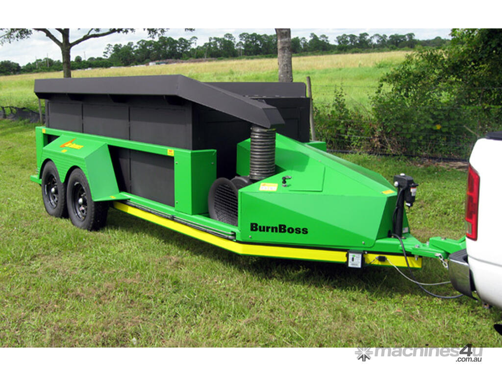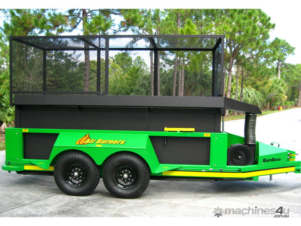 The BurnBoss is a self-contained, completely assembled above ground Air Curtain Burner (air curtain incinerator or FireBox) with a refractory lined burn-container that is dual-axle trailer mounted for off-road use and powered by an on-board Diesel engine.