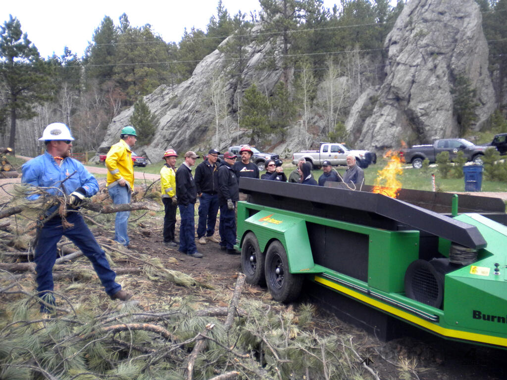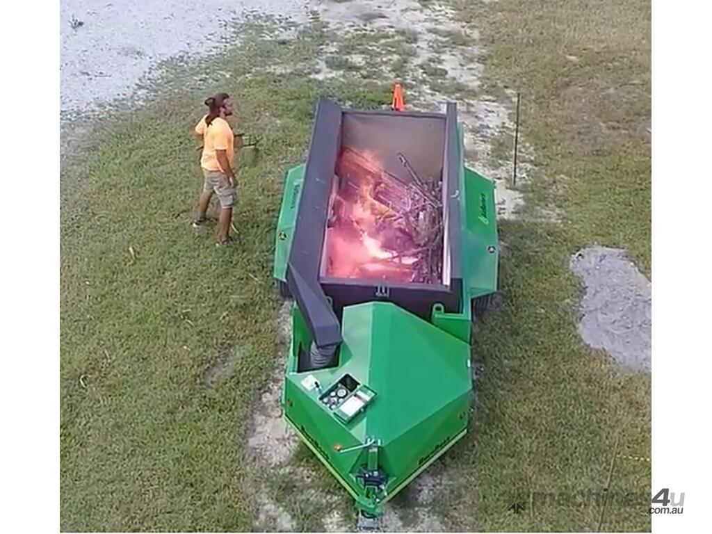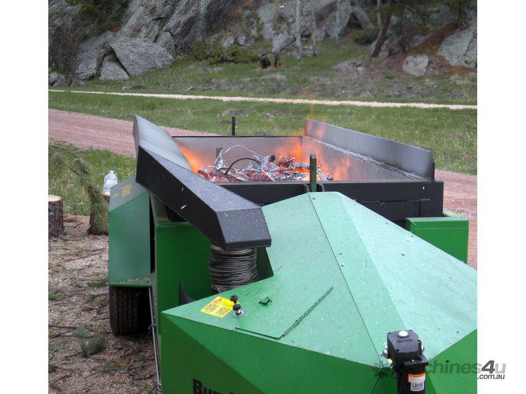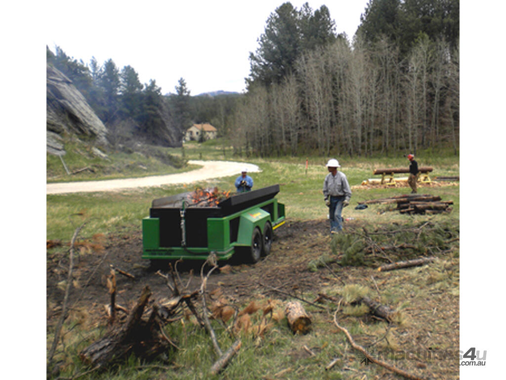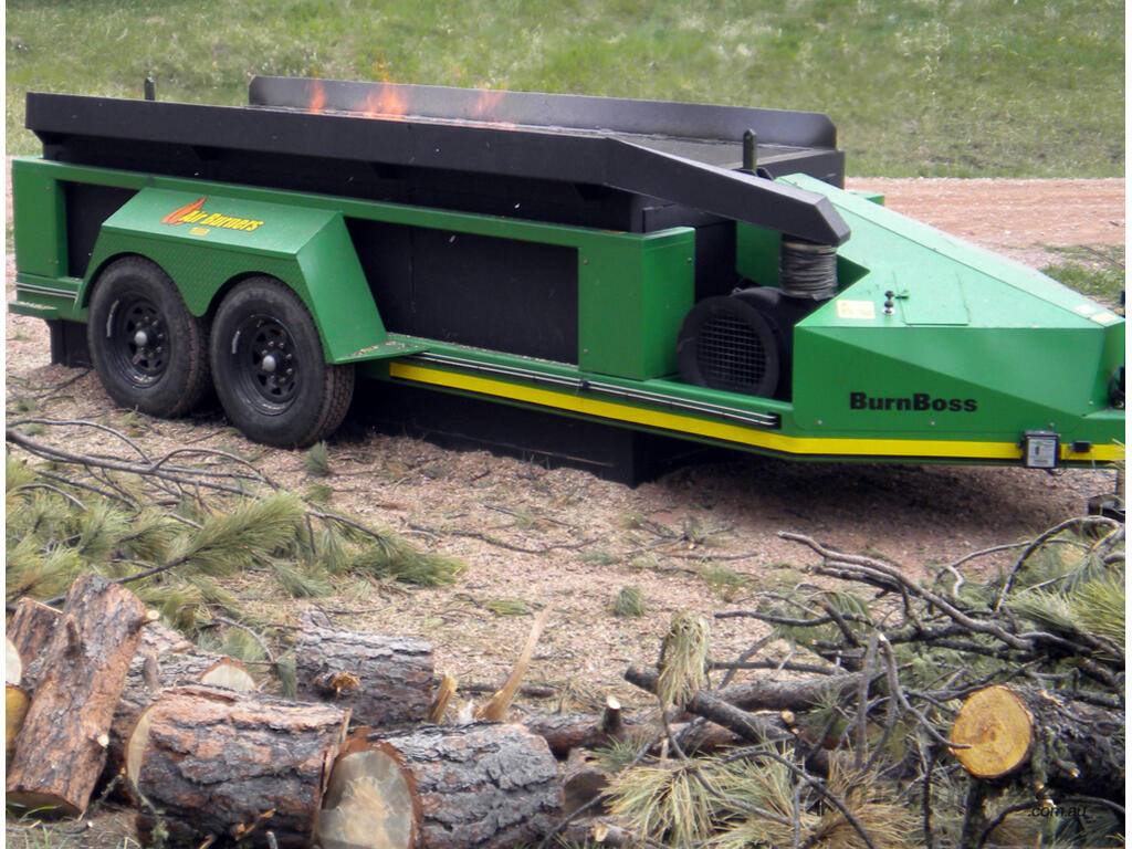 The FireBox is raised and lowered by a hydraulic lift system. Designed for the high temperature burning of forest slash, agricultural vegetative waste, land-clearing debris, green waste, storm debris, invasive species, contraband and other combustible waste streams in compliance with the requirements of US EPA 40CFR60 or other regionally applicable regulations. The machine is shipped from the factory completely assembled ready for immediate use. The BurnBoss is also useful for disaster recovery and Homeland Security contingencies.