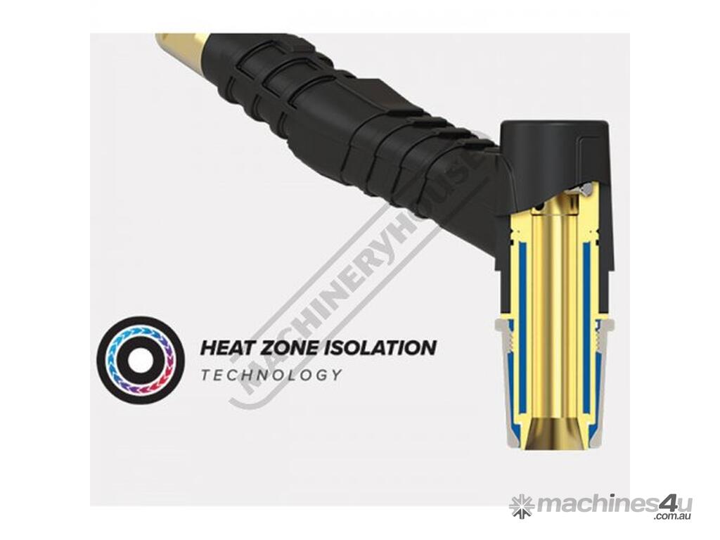 Transferred heat from the ceramic cup is isolated by a unique external barrier resulting in cooler running torches with increased power to weight performance ratios.