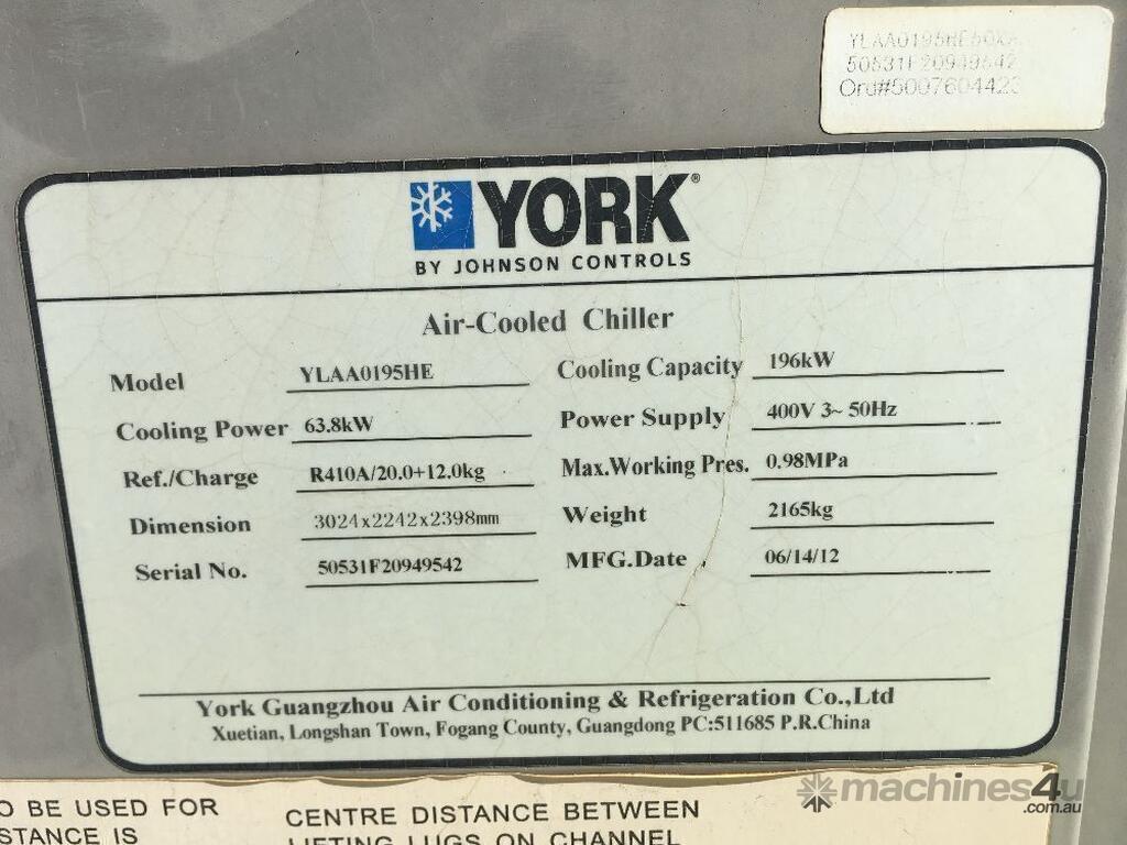 Air-Cooled Chiller, "York" model YLAA0195HE, 196kW cooling capacity, Power: 63.8kW, 400V 3~ 50Hz