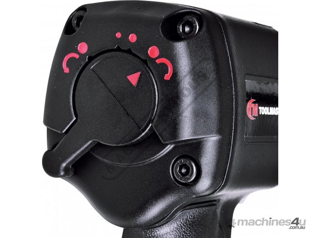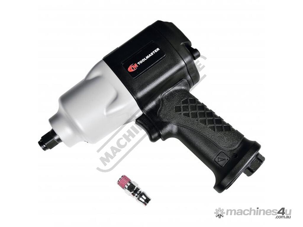 The Toolmaster 1/2" drive Twin Hammer air impact wrench offers an excellent power to weight ratio. Its alloy front case and back cover with a composite body only weighs 2.3kg but delivers a powerful 1000 ft-lb (1356 Nm) of torque.