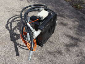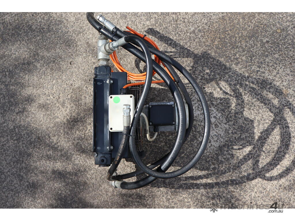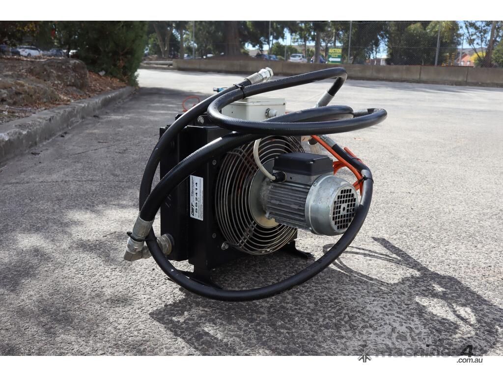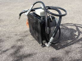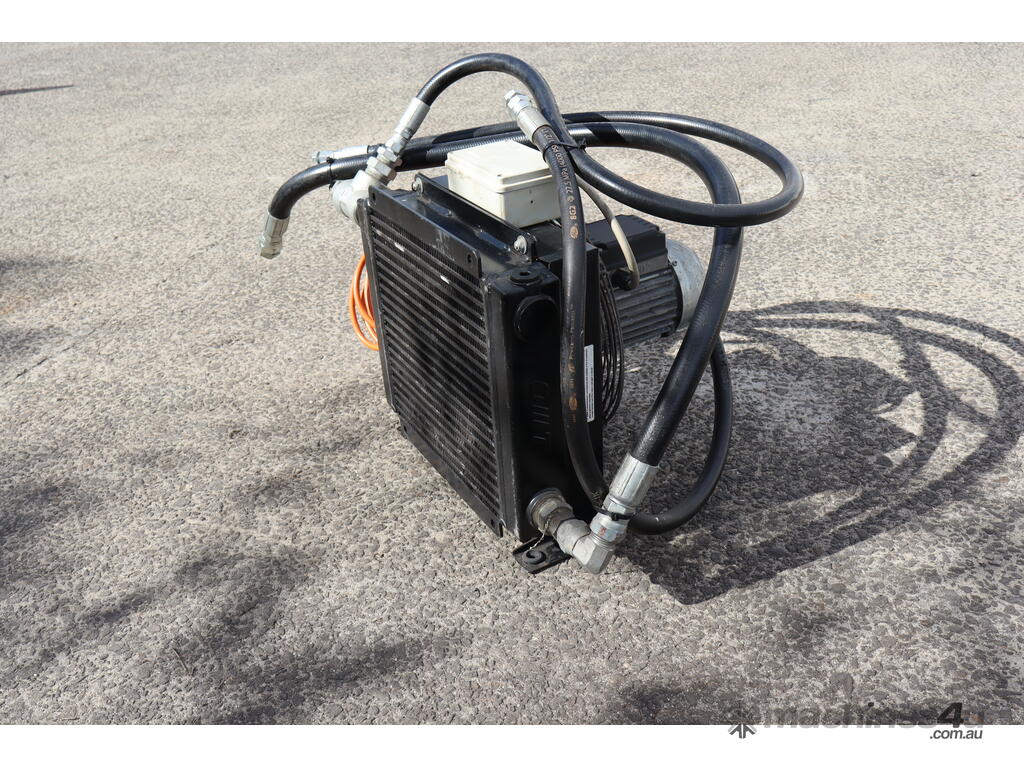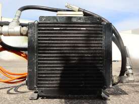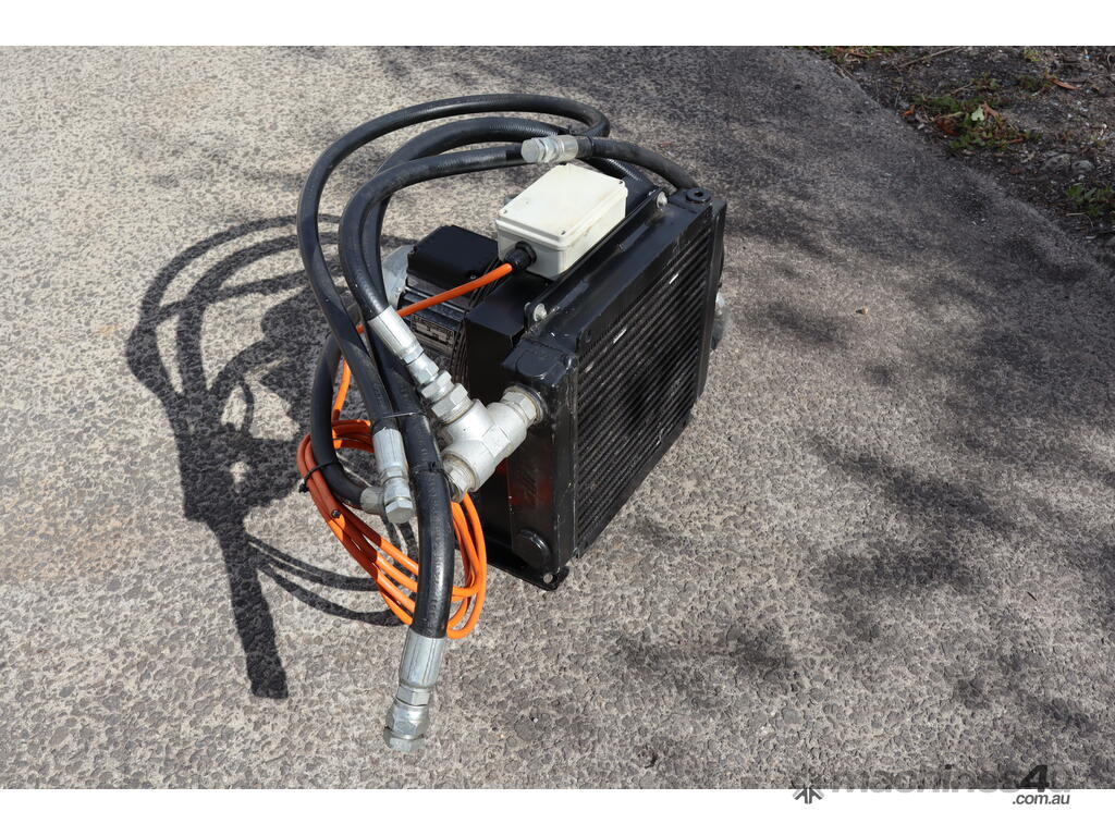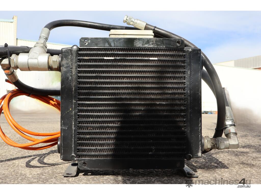 This oil cooler is in great working condition. This OMT SS2414 is an air-oil heat exchanger. The model is a reliable and efficient solution for cooling hydraulic systems, contributing to enhanced performance and longevity of machinery.