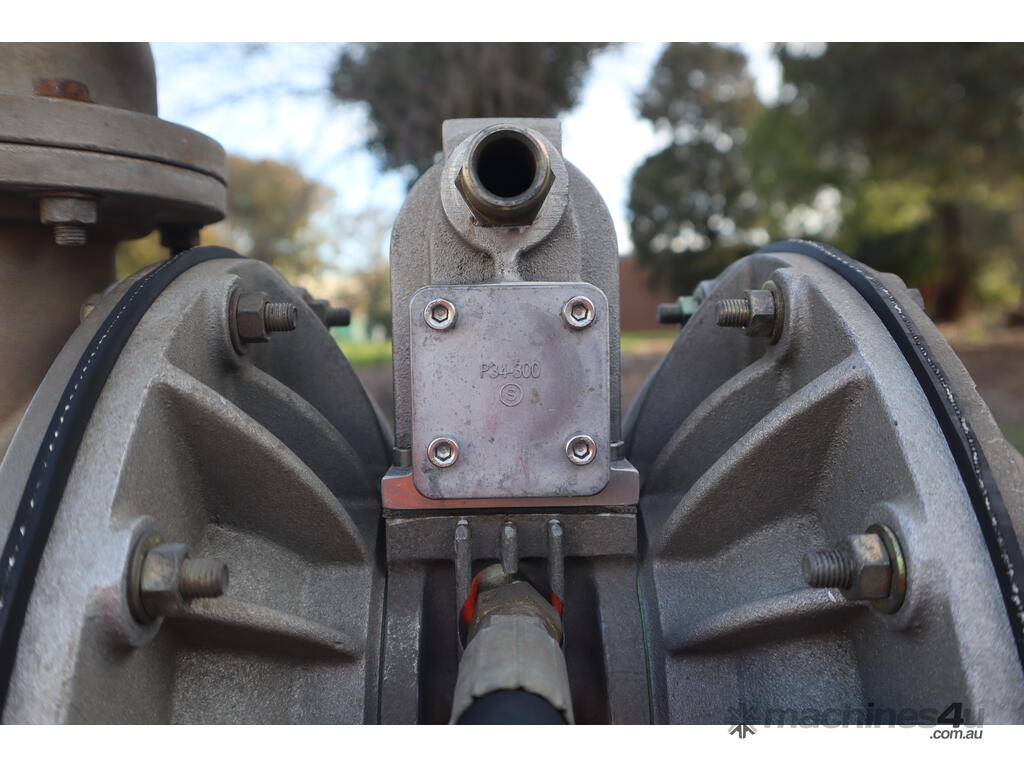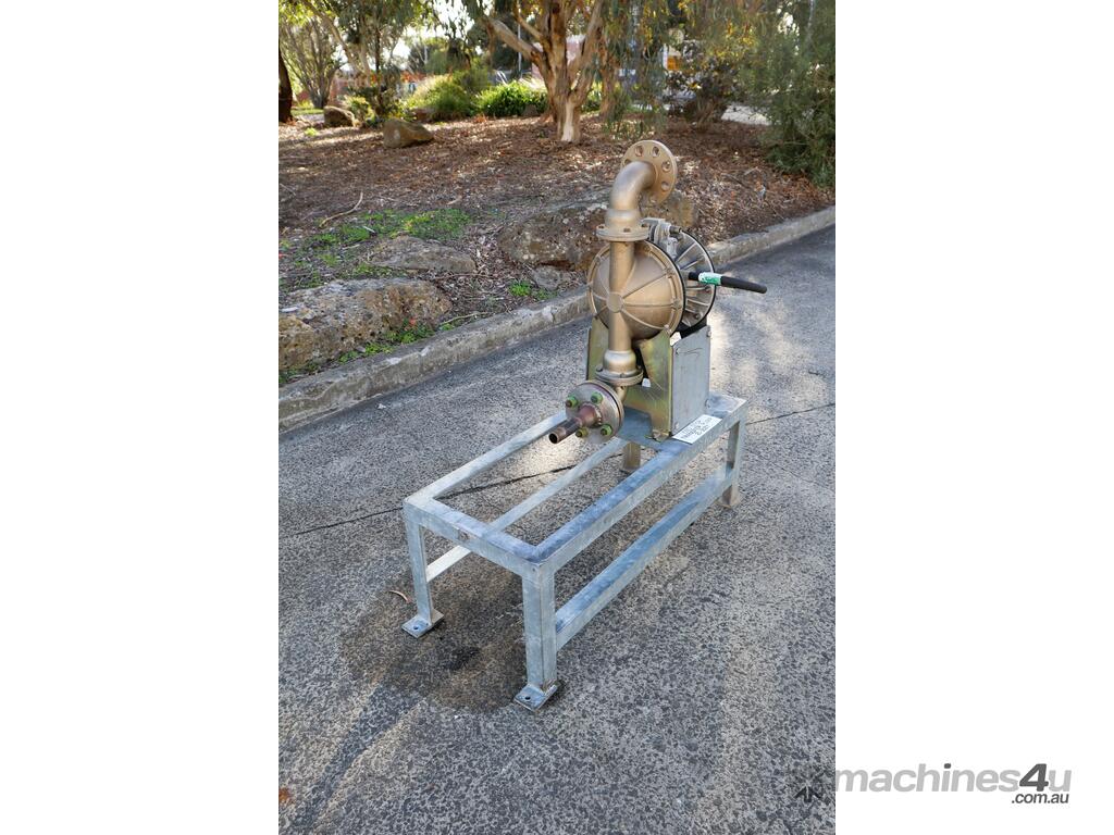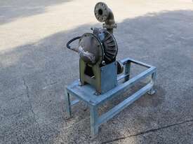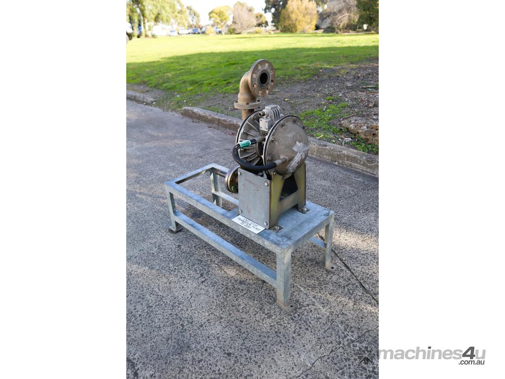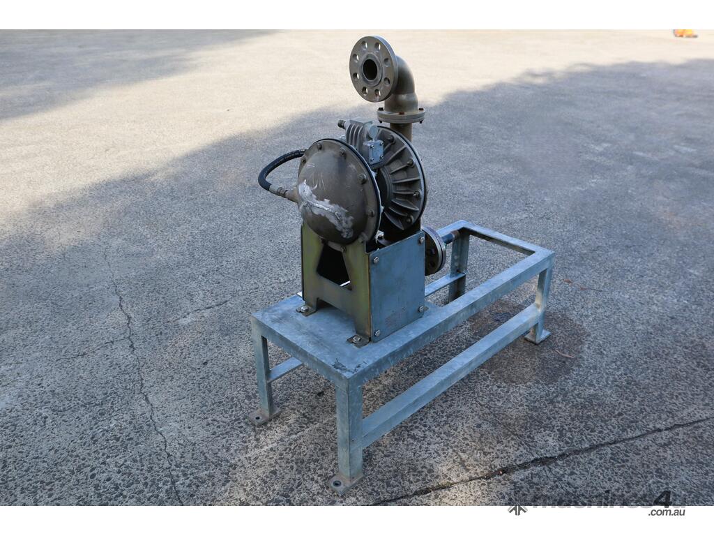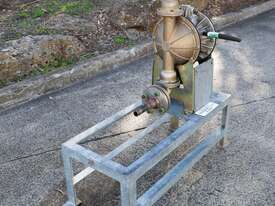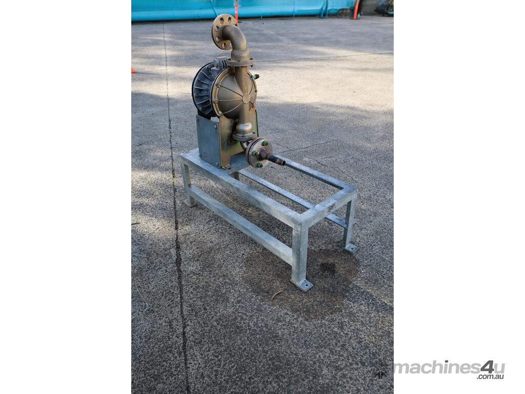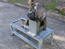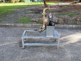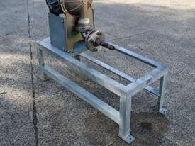 This pump is in good condition and mounted on a steel frame. One of the ends have been repaired.