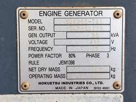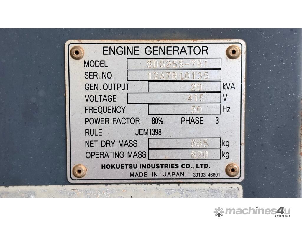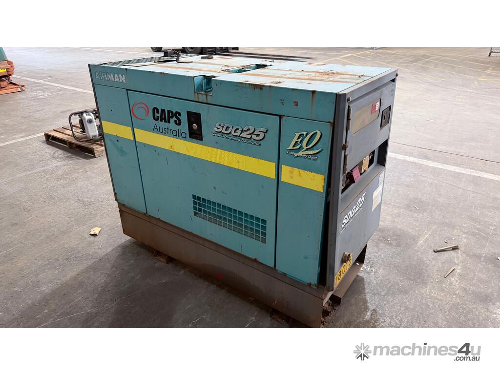 Airman SDG25 20kVA Diesel Brushless Generator,Airman SDG25 Diesel Brushless Generator, Model SDG25S-7B1, Serial No: 12A7B10135, 20 kVA Output, 415 V, 50 Hz, 3 Phase, Power Factor 80%, Net Dry Mass 685 kg, Operating Mass 820 kg, Keys Included, Did Not Start For Inspection, Visibly Corroded,Serial No: 12A7B10135