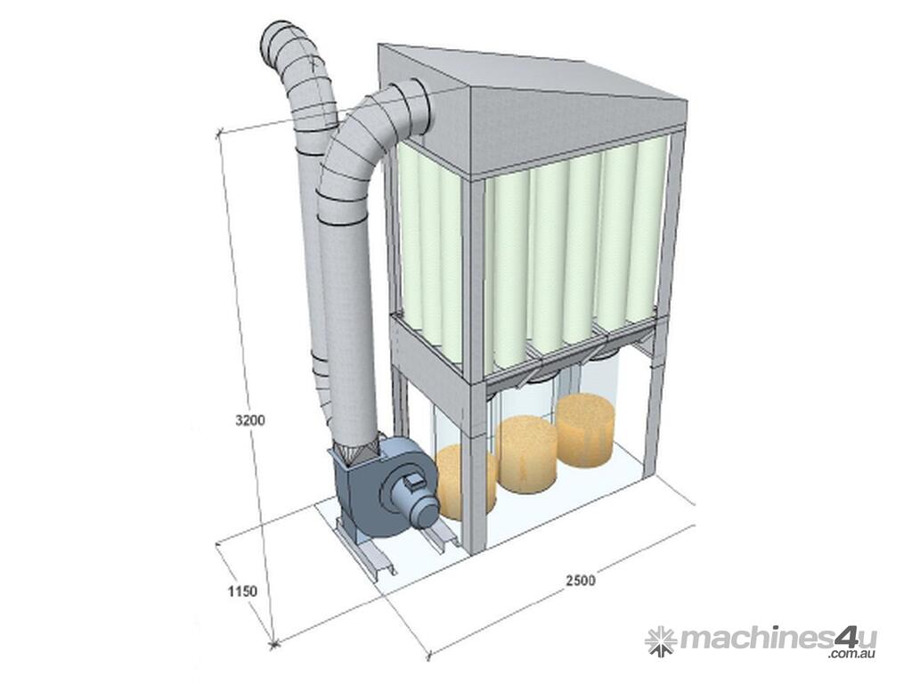 The T-750 has a capacity of 7,500m3/hr dependant on dust type and dust loading. For a typical joinery/cabinet maker application this may equate to 2-4 machines.