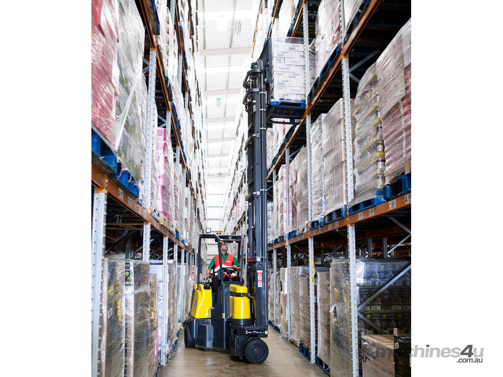 Unit is equipped with an articulated mast design allowing operation in aisles as narrow as 1.75 metres, making it ideal for maximising warehouse space and improving storage density.