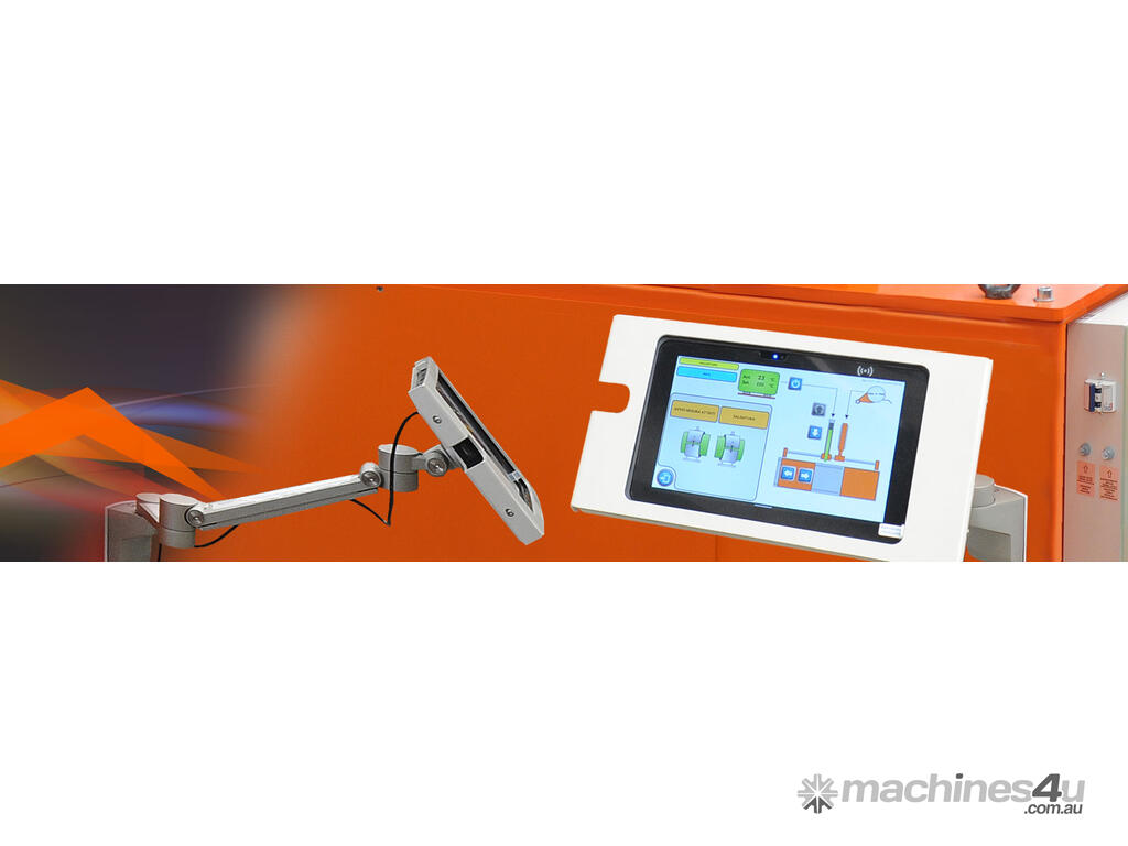 The welding machine is managed via a 10” Android tablet mounted on an articulated and adjustable support. The graphic resolution of 1920 x 1200 pixels guarantees highly sharp images.