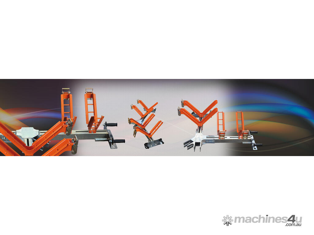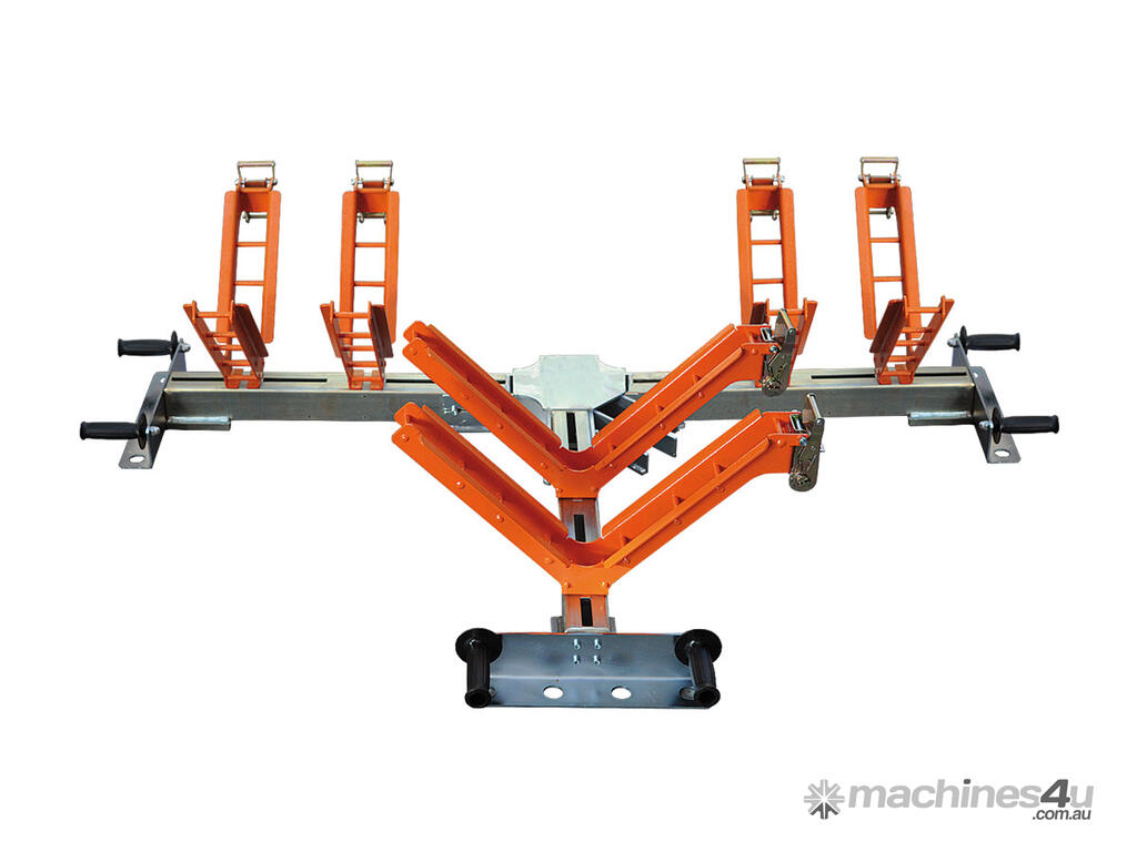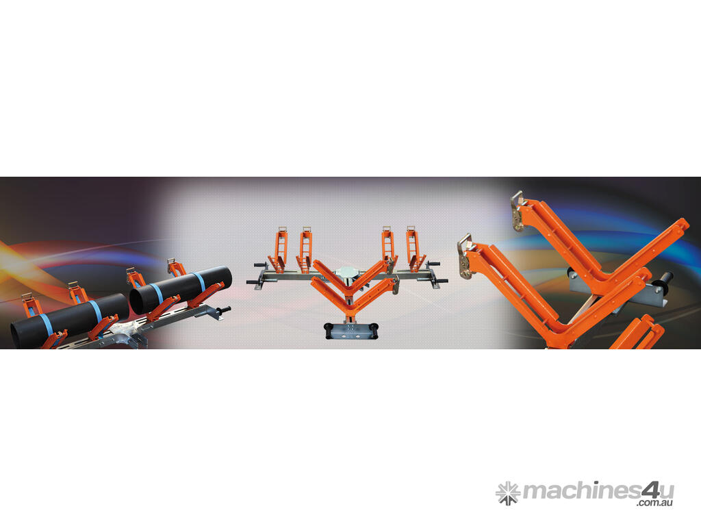 Axes have V-shaped clamps positioned on them, which are equipped with pipe fastening belts. The system, along with fixing the pipe to the clamp, serves also as a centering device.
