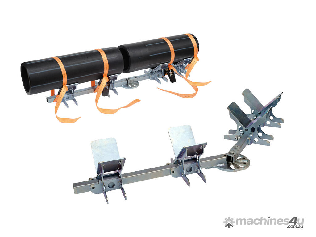 Axes have V-shaped clamps positioned on them, which are equipped with pipe fastening belts. The system, along with fixing the pipe to the clamp, serves also as a centering device.