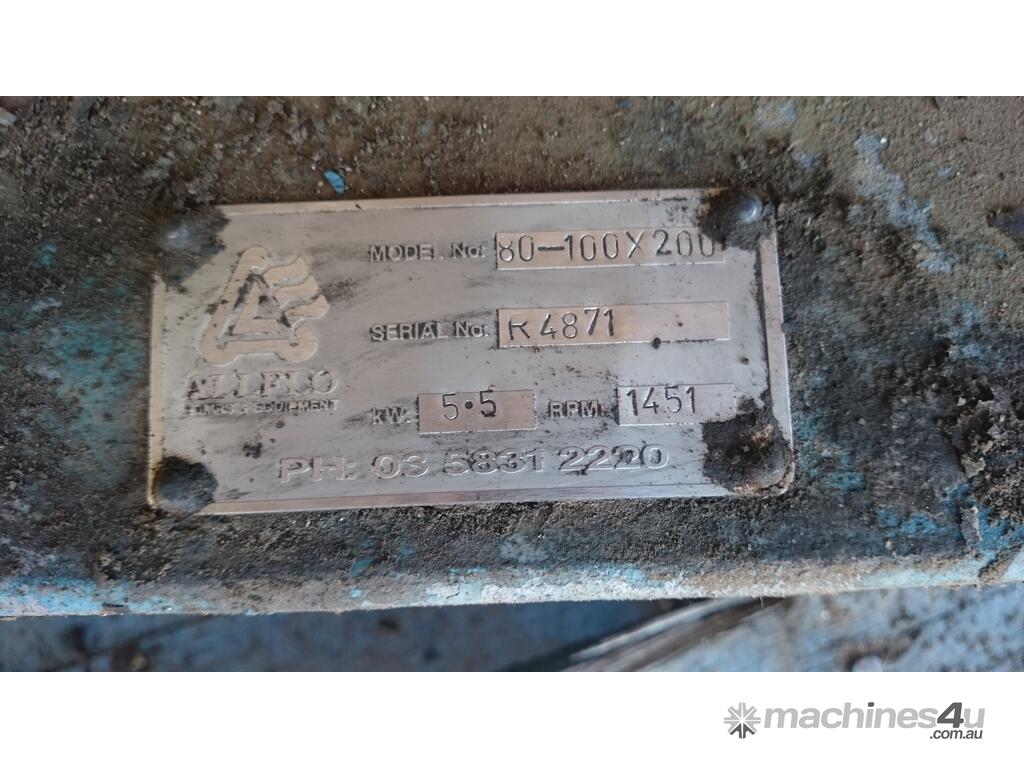 Irrigation pump made by Allflow: 80-100 x 200. Excellent condition, this is a well made reliable pump with a solid base and good bearings. 1451 RPM, 5.5 kW. 3 phase