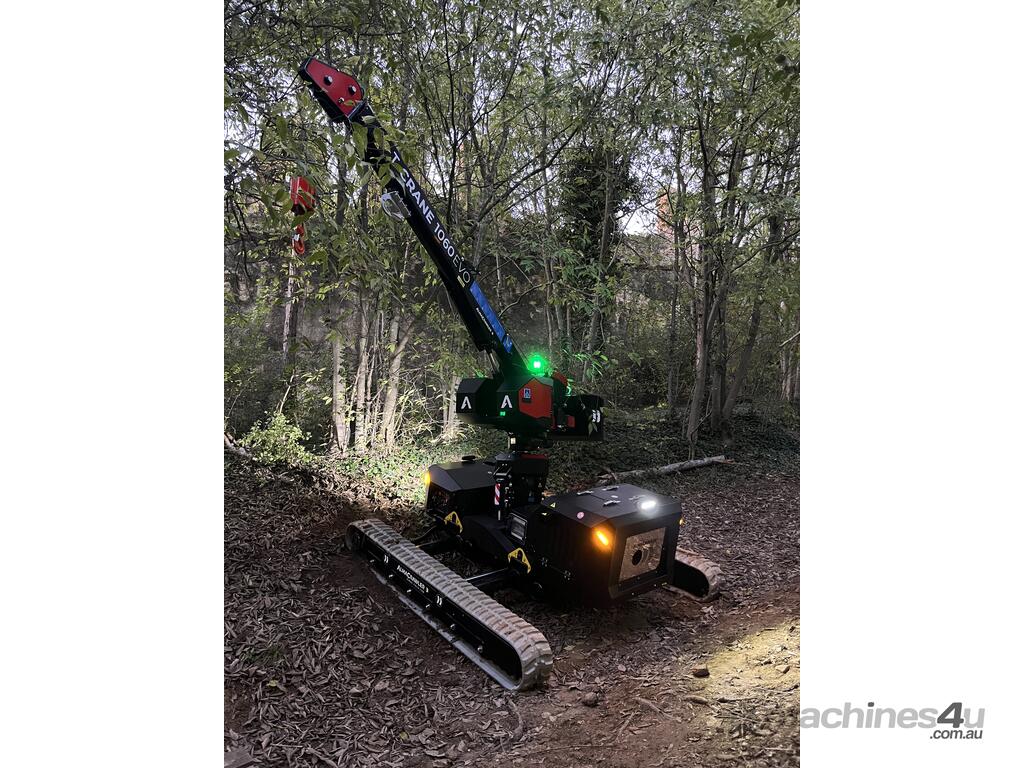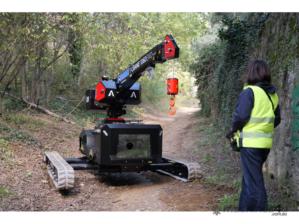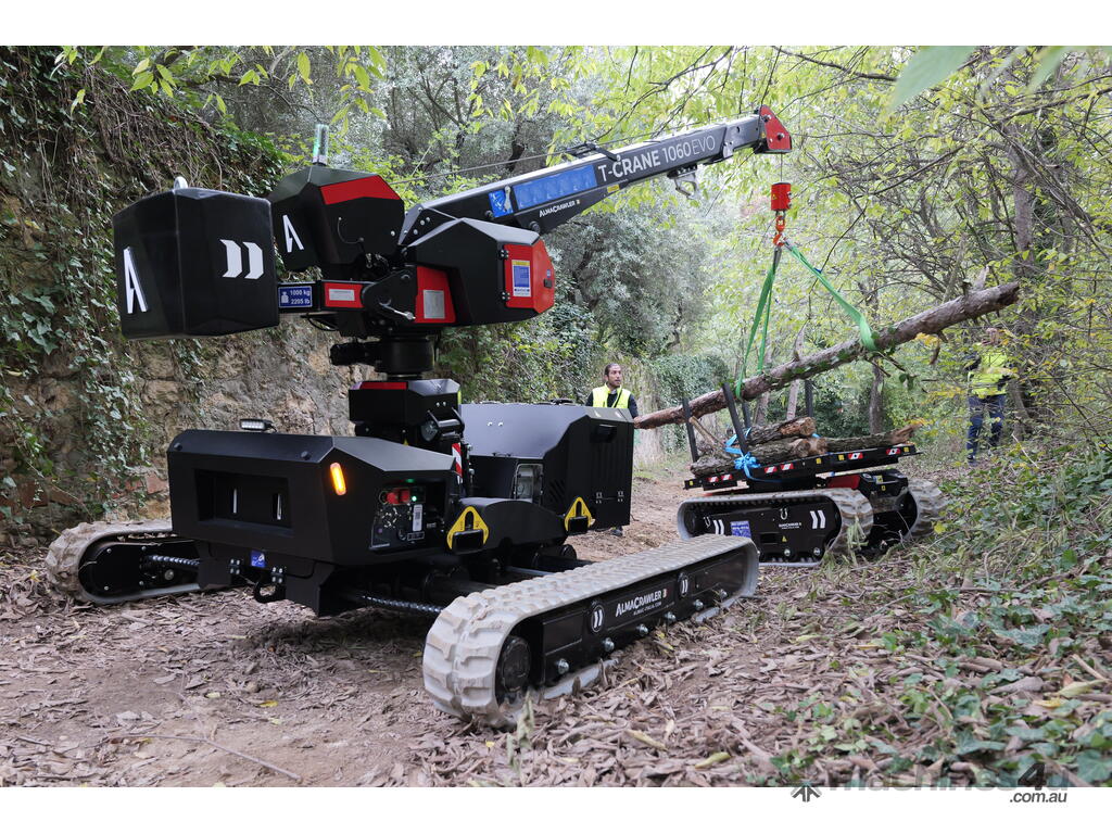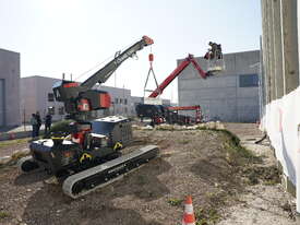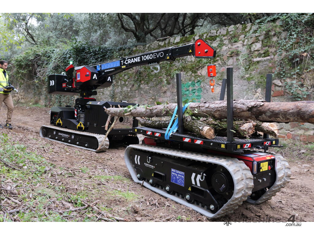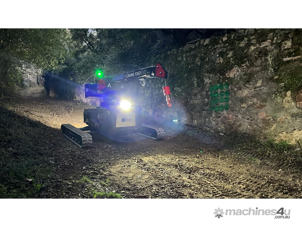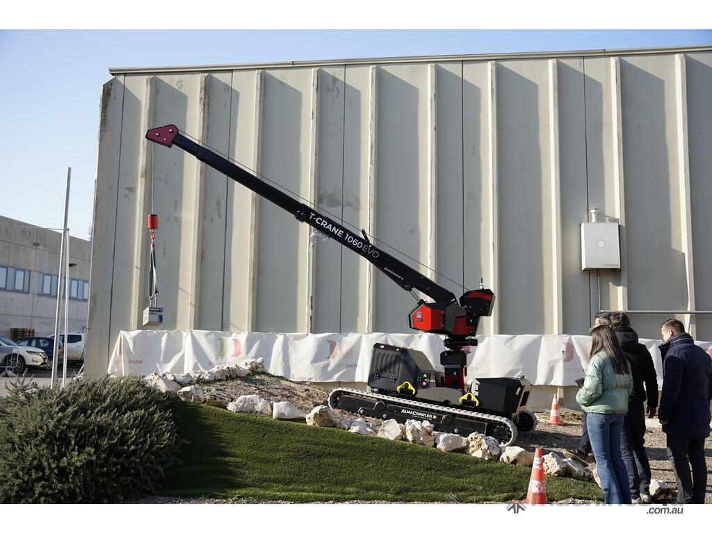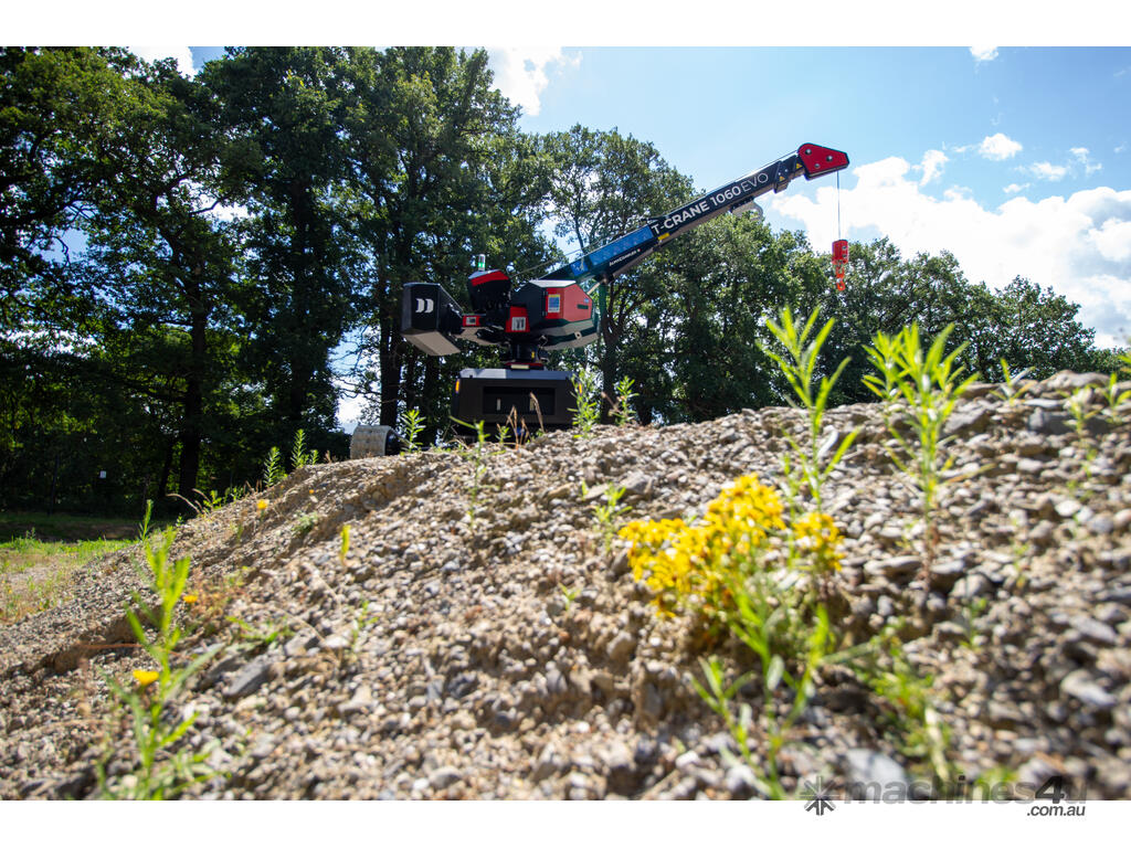 Equipped with a standard remote control, the T-Crane 1060 easily travels and carries loads up to 990kg, featuring a 7.7m lifting height with a 6.1m maximum working radius.