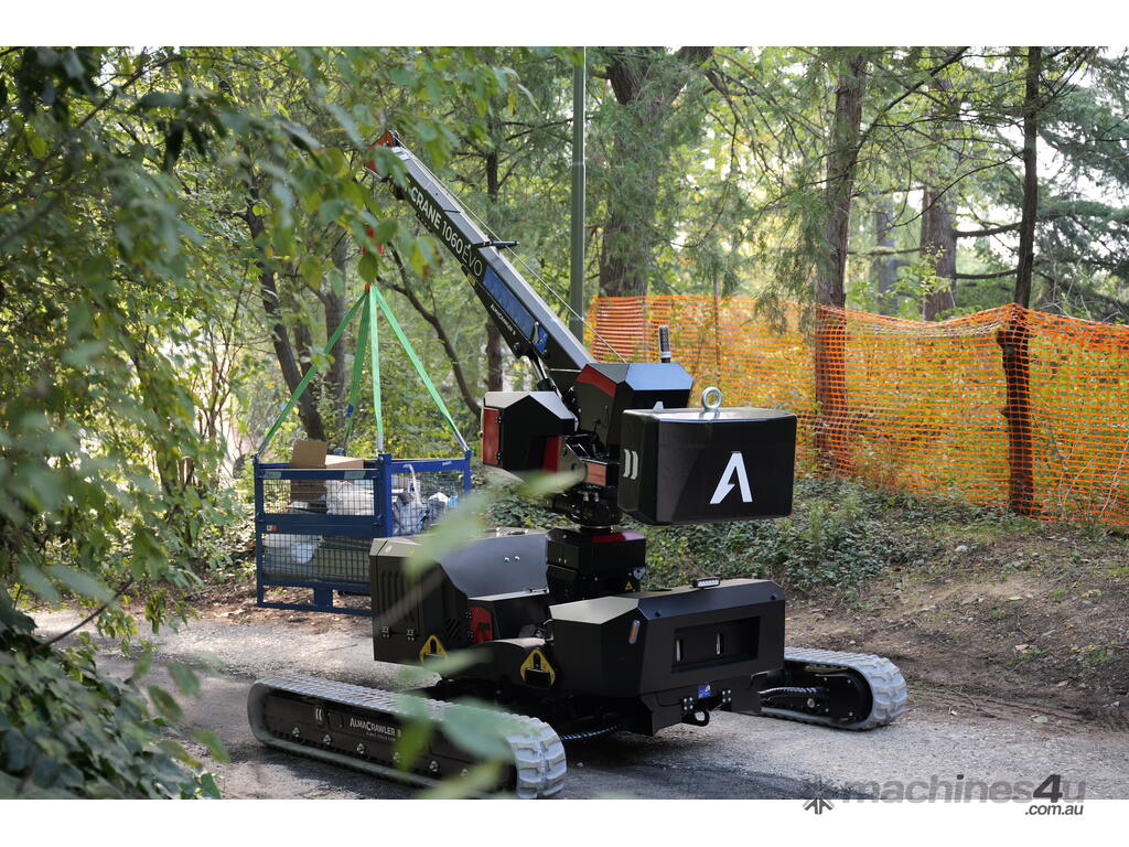 The first pickmini-crane with AlmaCrawler self-levelling technology, available either with a Yanmar engine or a full-electric 300Ah Lithium battery pack.