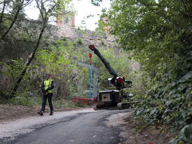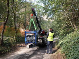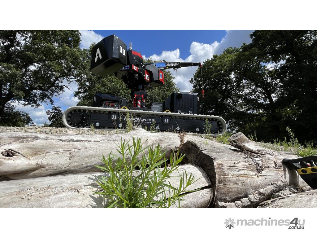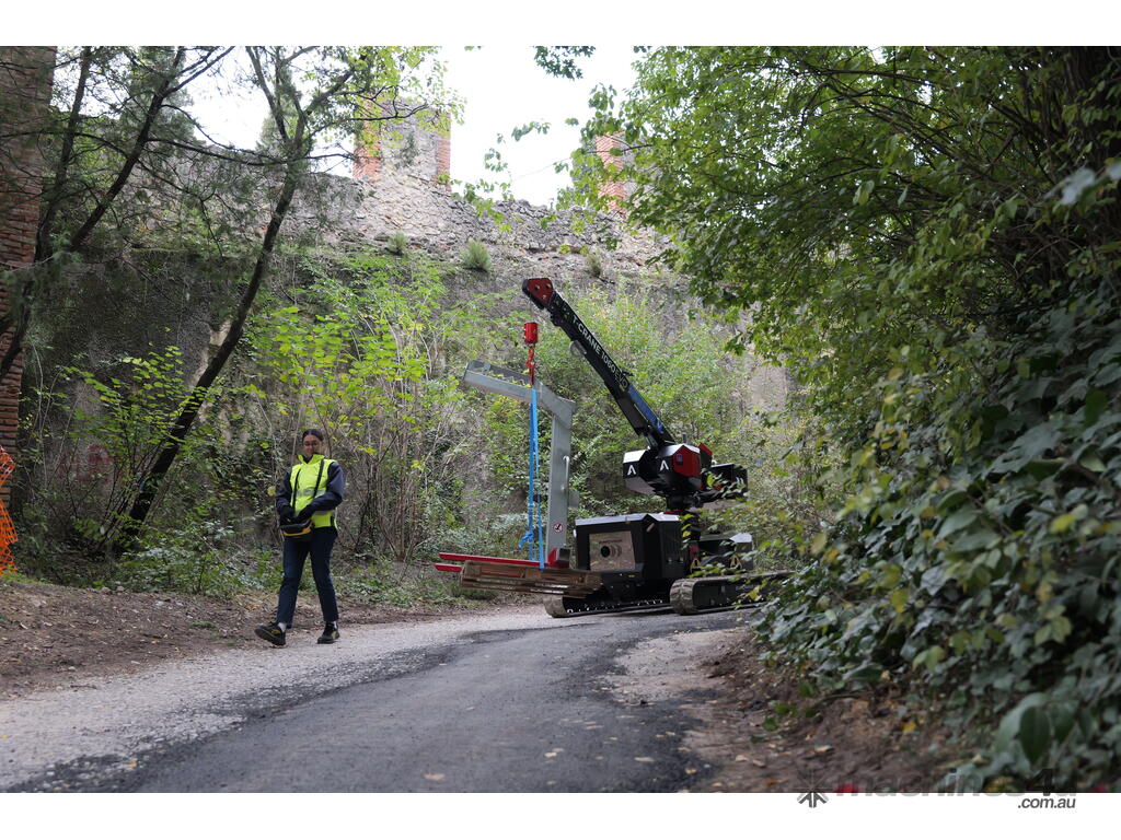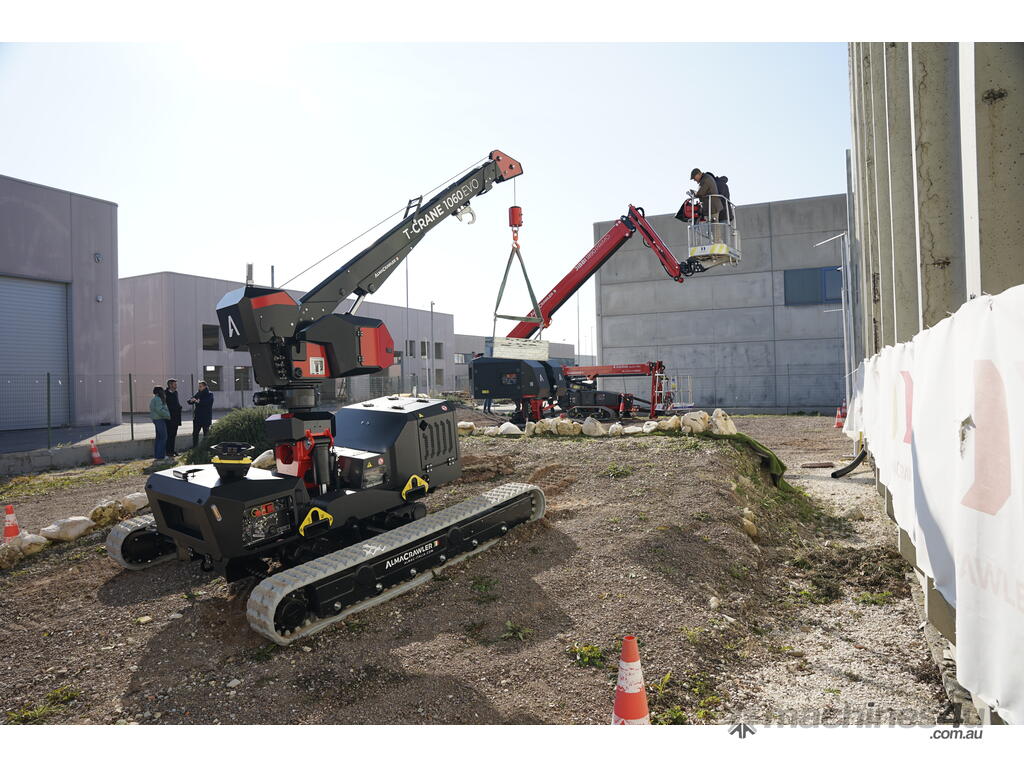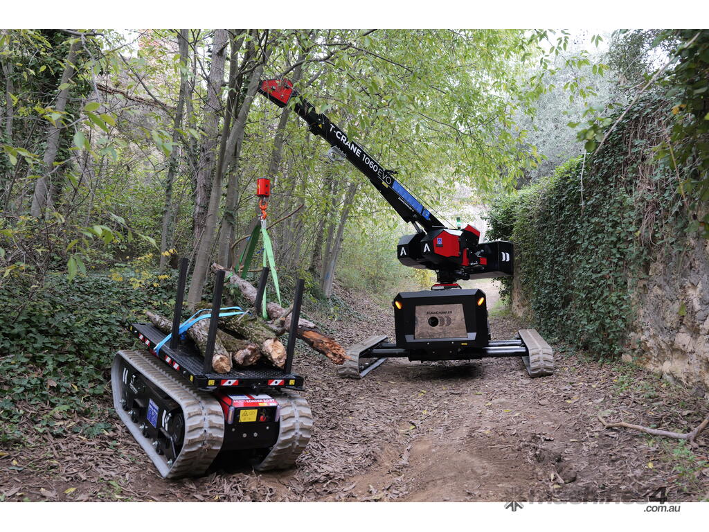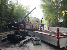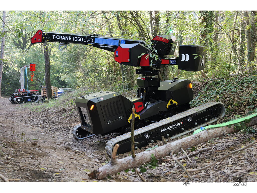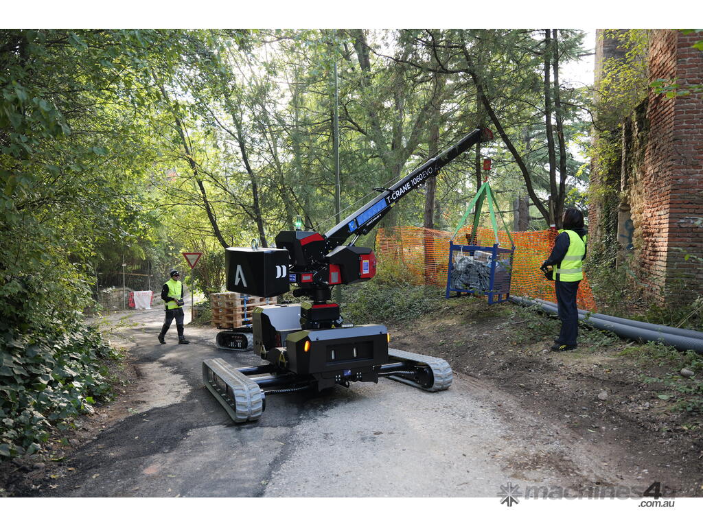 Pick & carry mini-crane with AlmaCrawler self-levelling technology, available either with a Yanmar engine or a full-electric 300Ah Lithium battery pack.