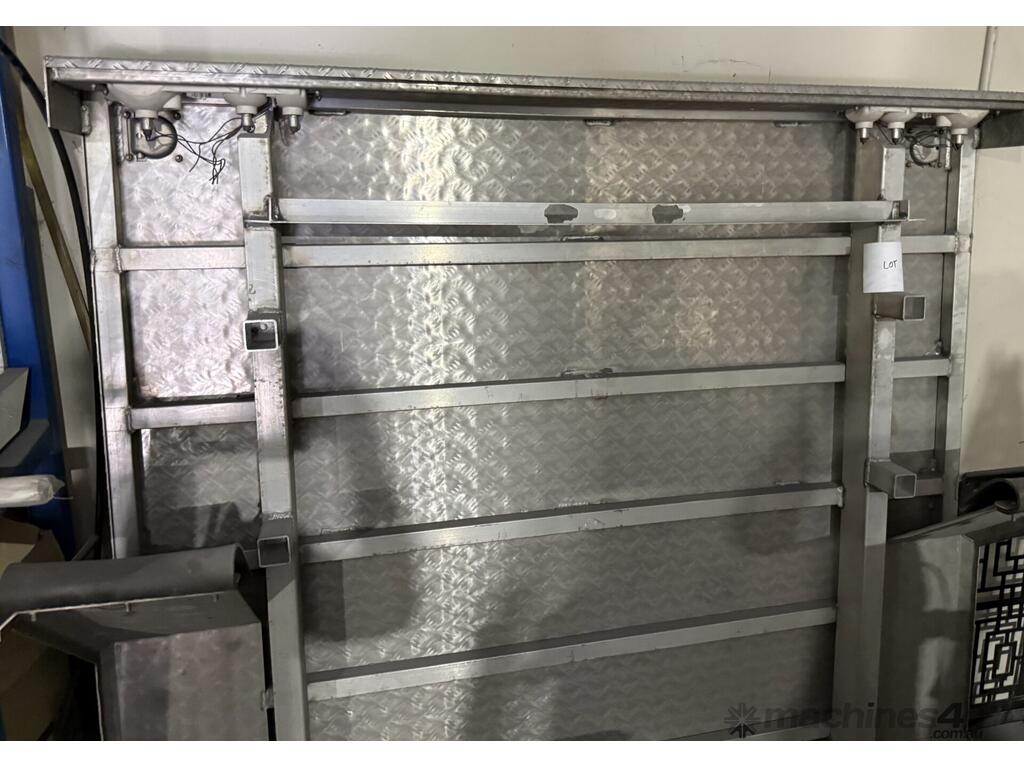 Aluminium Checker Plate Tray Body - Appears to be for Trailer or Ute Tray, Model Unknown, Dimensions: Approx. Length 1.7m x Width 1.8m. ,Inspection Recommended, See Photos For More Details. A Buyers Premium of 13.2% (GST Inc) Will Be Applied.