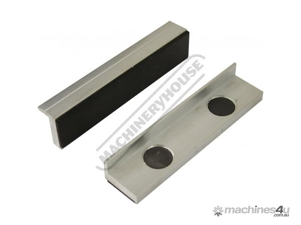Rubber plain face aluminium soft jaws come with 2 magnetic tabs to ensure jaws remain fixed to the vice. Rubber face helps prevent your work piece from being marked.