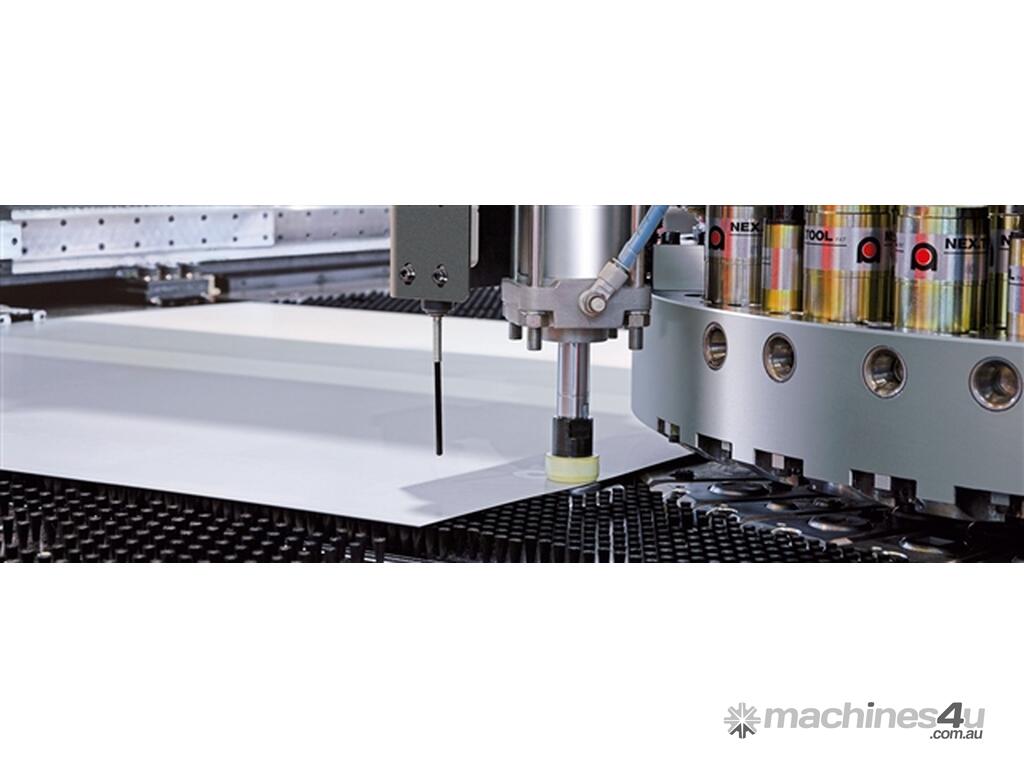 The next generation of the cutting edge EM Series turret punch press. Utilizing power saving electric servo drives, this innovative machine combines high speed production, impressive reliability and numerous cost and process improvements.