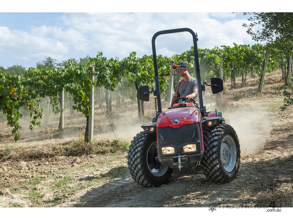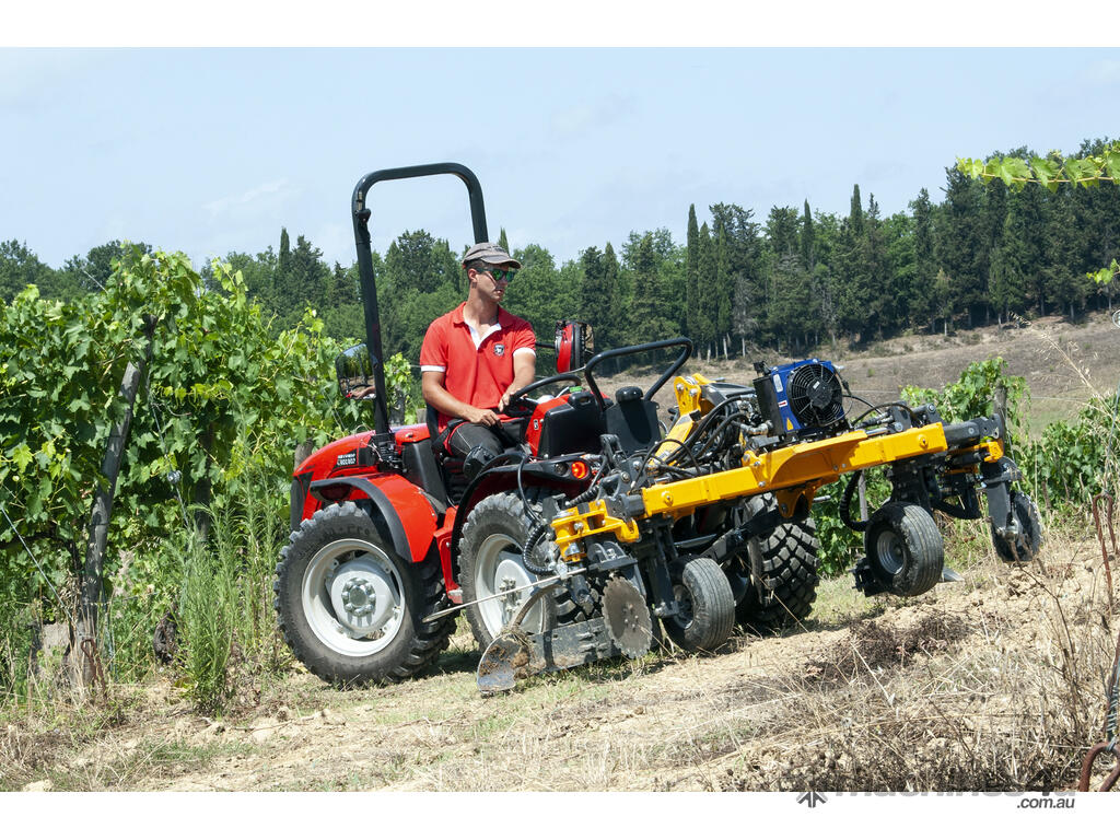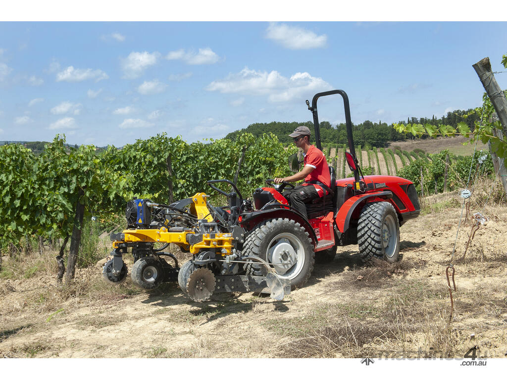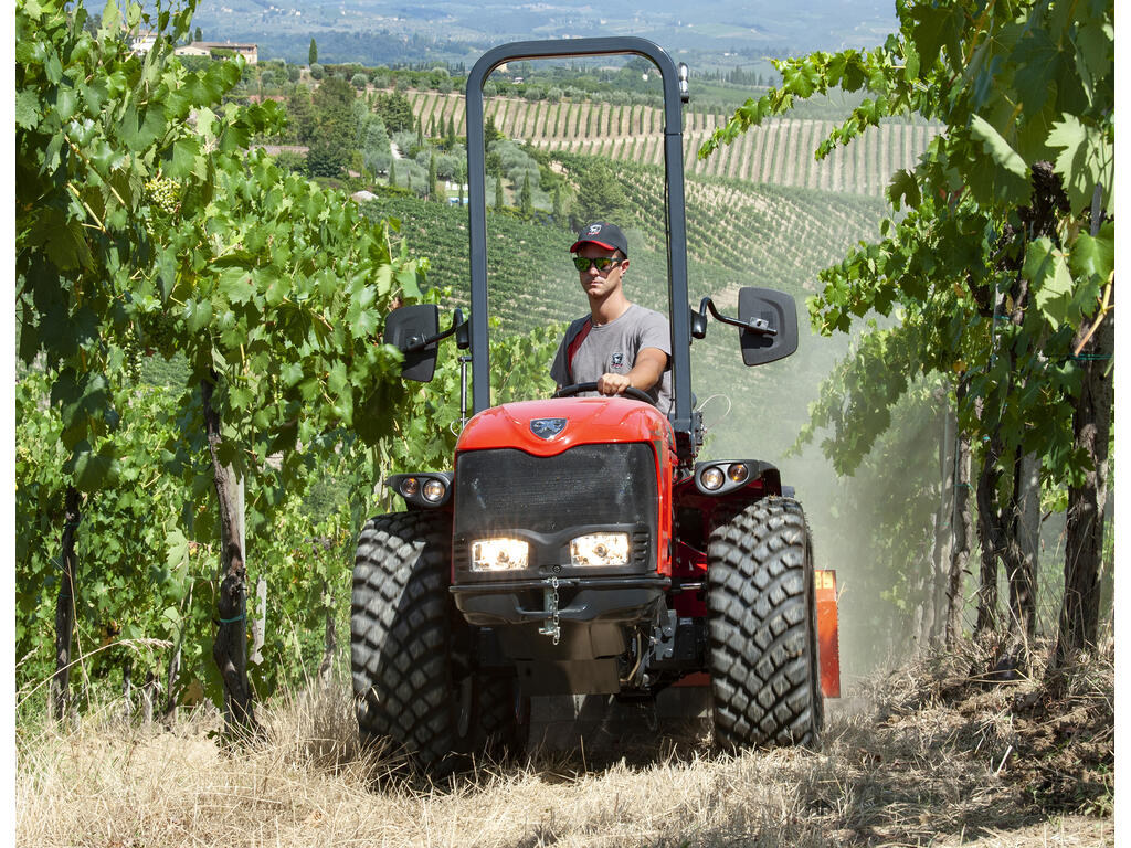 The TRX 5800 is a compact yet powerful 50 hp tractor, designed with a reversible driving system, steering, and isodiametric wheels. This model incorporates features typically found in high-end Antonio Carraro tractors, making it an ideal choice for vineyards, orchards, and green or urban maintenance tasks. Its short wheelbase and tight turning radius offer excellent maneuverability in confined spaces, while the ACTIOTM frame and 4-wheel drive provide stability and consistent traction on slopes. The gearbox is a versatile 16+16 with a synchronized reverser for smooth operation.