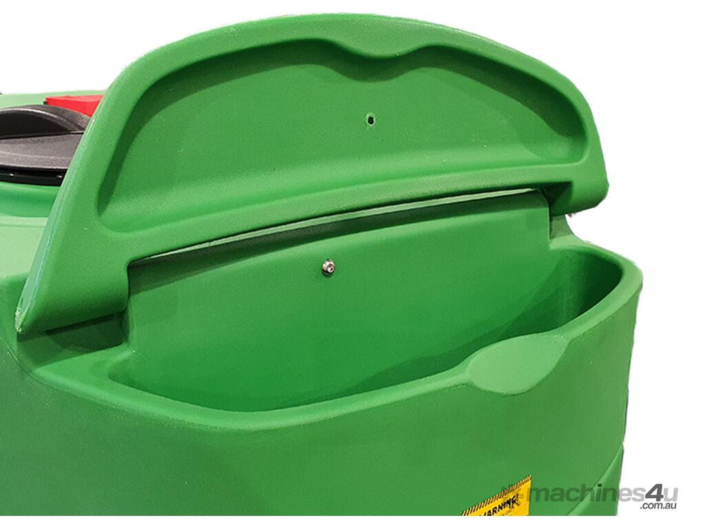 > StorageBox™ handy built in chemical container storage system allows you to take chemical with you to the field saving unnecessary travel when refilling