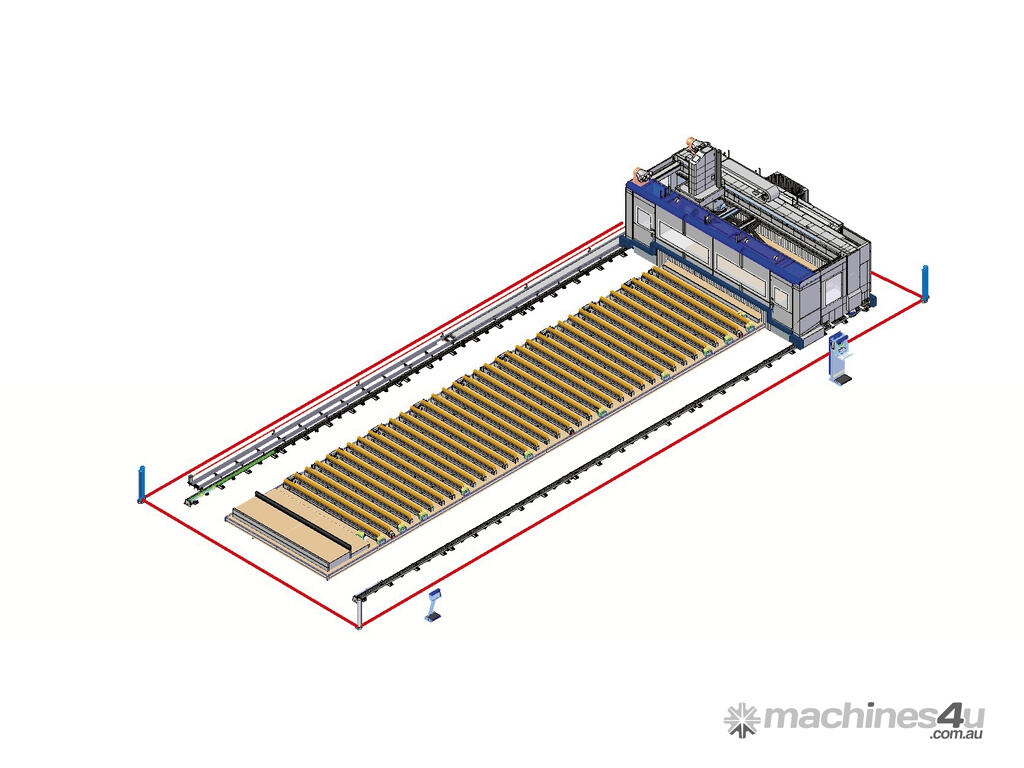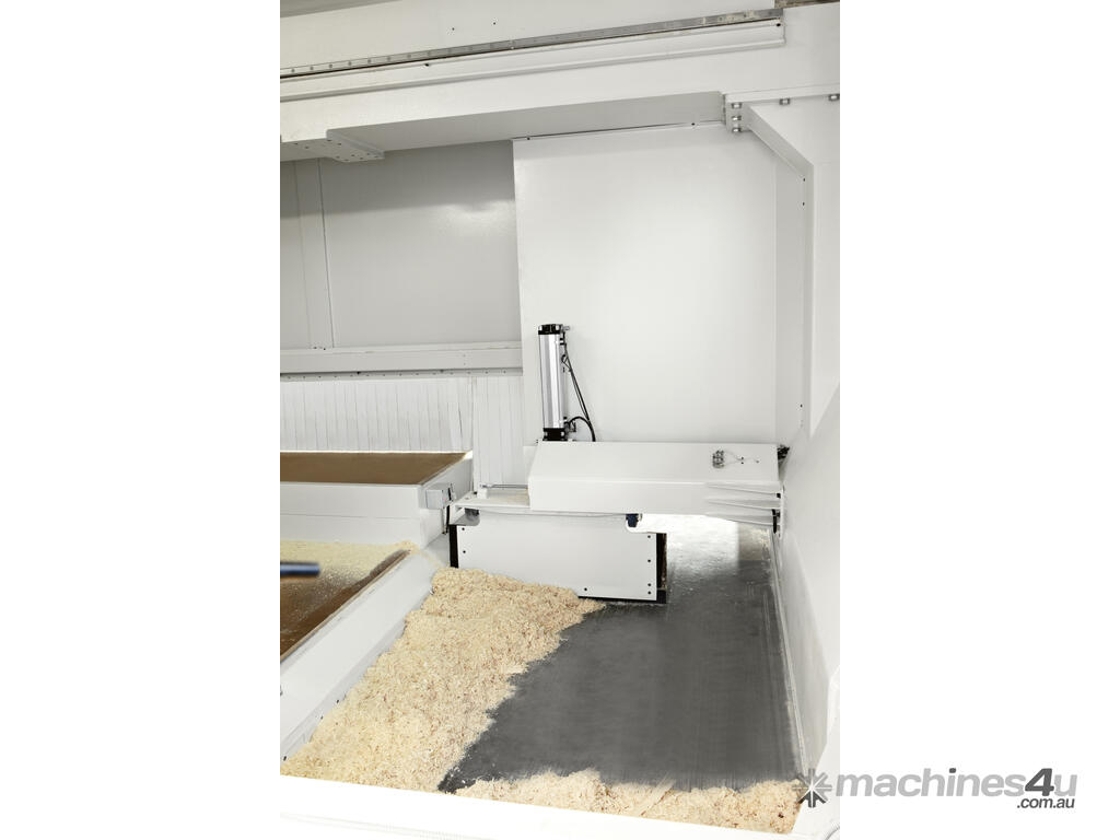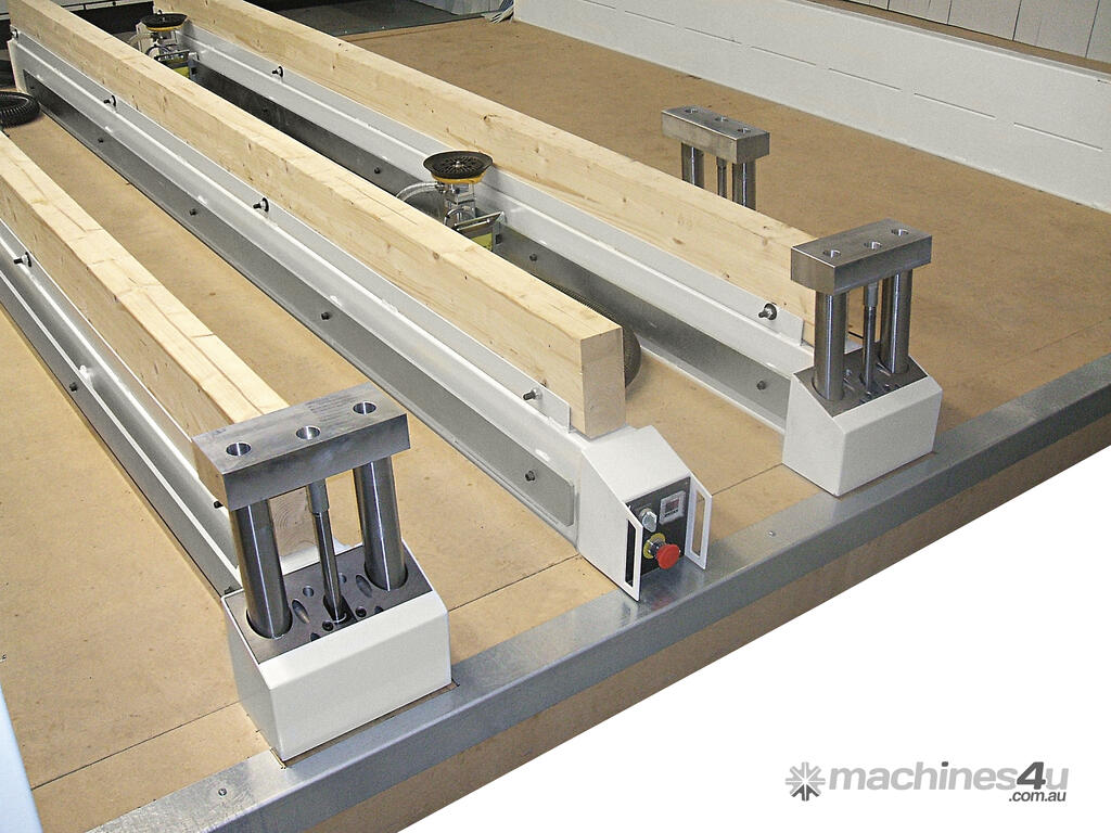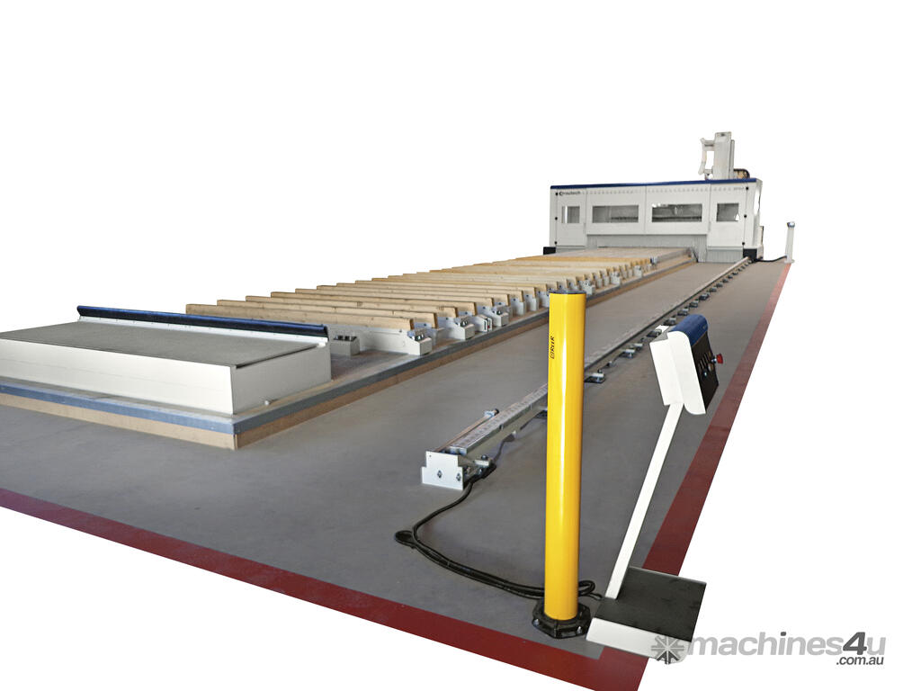area is a 5-axis CNC machining centre with a mobile gantry structure and modular composition for processing big timber construction elements, such as CLT panels for walls, straight and curved structural beams. It allows processing of elements up to 4,5 m wide and 50 m long.