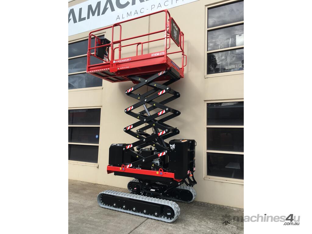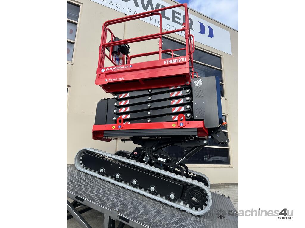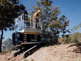 Utilising it's Patented Bi-levelling Undercarraige - The ALMACRAWLER Athena Tracked Scissor lift will continually provide safe working solutions on steep inclinations, rough terrain, difficult to access areas as well as managing the standard tasks required by a Mobile Elevating Work Platform. This one unit can provide a working solution replacing many traditional approaches.