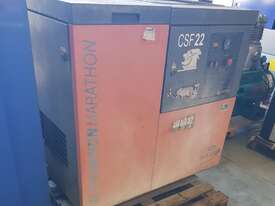 7). CHAMPION MARATHON CSF 22 by SULLAIR 22kw 30hp 415v 7.8 BAR 131CFM ROTARY SCREW COMPRESSOR Year 2004, MADE IN AUSTRALIA FOR AUSTRALIAN CONDITIONS, ITALIAN AIREND, GENUINE 10,957 HOURS, GOOD CONDITION. COSMETICALLY BLEMISHED BY OVERSPRAY - PRICE REDUCED ACCORDINGLY. BARGAIN!