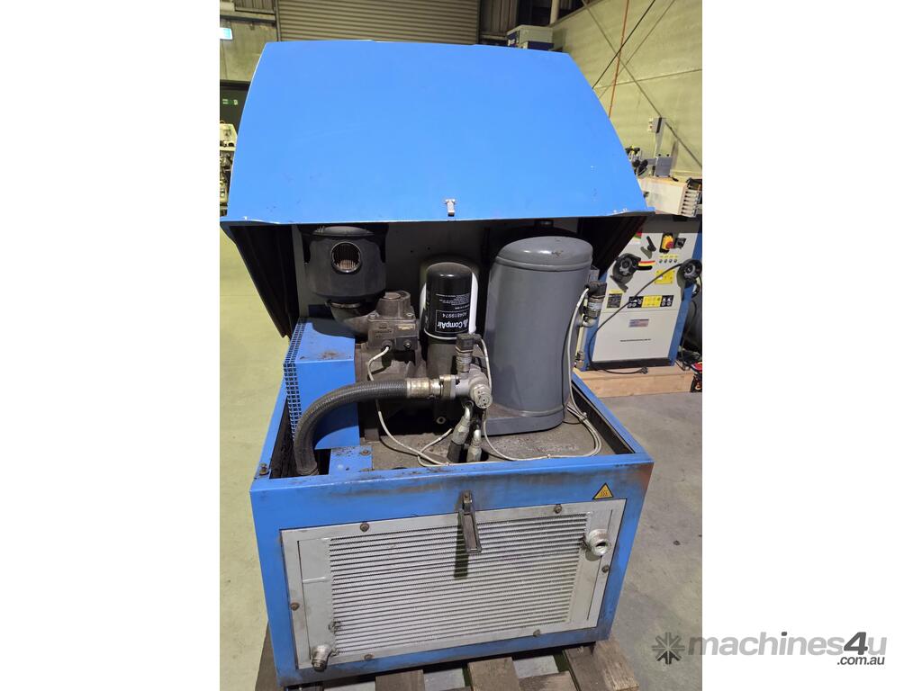 6). COMPAIR L18 18.5kw 25hp 415v 7.5 BAR ROTARY SCREW COMPRESSOR BASE MOUNT Year 2002 MADE IN GERMANY, HEAVY DUTY, FULLY MAINTAINED IN VERY GOOD ORIGINAL CONDITION. BARGAIN! REQUEST BROCHURE.
