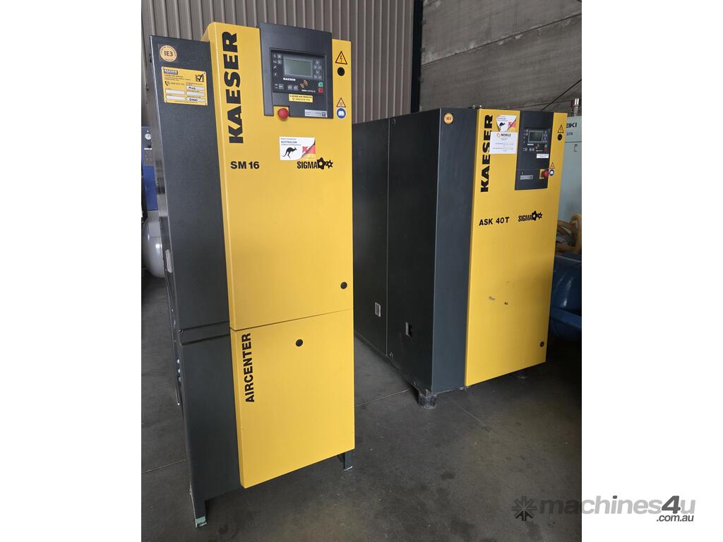 4). KAESER AIRCENTER SM16 9kw 12hp 415v 8 BAR 3-IN-1 FULLY-FEATURED ROTARY SCREW COMPRESSOR Year 6/2020 INCLUDING BUILT-IN REFRIGERATED AIR DRYER / FILTERS MOUNTED ON 270 LITRE AIR RECEIVER AIR TANK, SIGMA 2 ELECTRONIC CONTROLLER, RFID SERVICE OPTION INCLUDING SWIPE CARD, MADE IN GERMANY, VERY LOW RUN HOURS, SUPER QUIET, HEAVY DUTY, VERY COMPACT FOOTPRINT, 1 OWNER, AS NEW CONDITION. REQUEST BROCHURE.