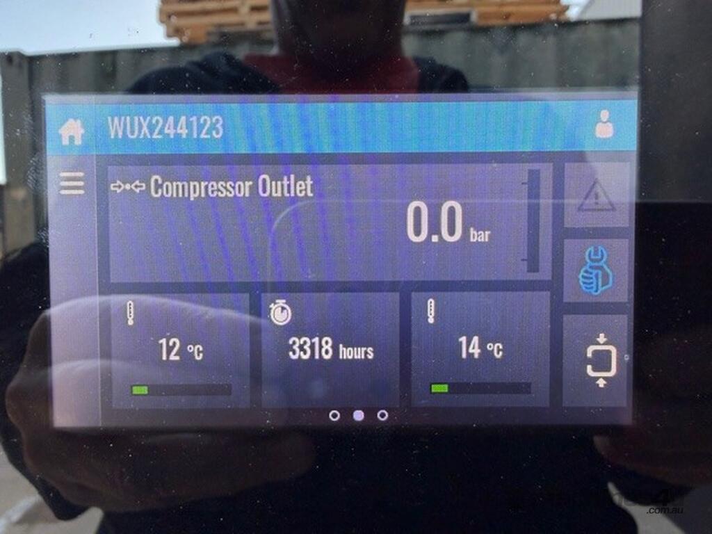 Rotary screw air compressor with integrated refrigerated air dryer for clean, dry air output. Produces 4350 litres per minute at 7.5 bar. Direct drive gearbox ensures efficient performance with low maintenance, supported by a high output oversized air end. Low hours at only 3318, offering excellent value compared to new.