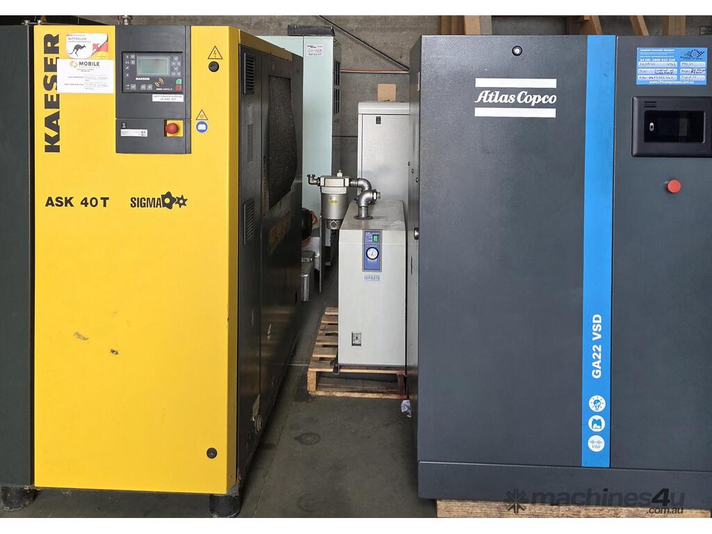 2). KAESER ASK 40T 22kw 30hp 8 BAR 2-IN-1 FEATURED ROTARY SCREW COMPRESSOR Year 11/2018 INCLUDING BUILT-IN REFRIGERATED AIR DRYER / FILTERS, SIGMA 2 ELECTRONIC CONTROLLER, RFID SERVICE OPTION INCLUDING SWIPE CARD, MADE IN GERMANY, HEAVY DUTY, SUPER QUIET, GENUINE LOW 20,300 RUN HOURS, RECENTLY SERVICED, 1 OWNER, TOP CONDITION. REQUEST BROCHURE. REQUEST EXTRA PHOTOS. 1/2 NEW PRICE!