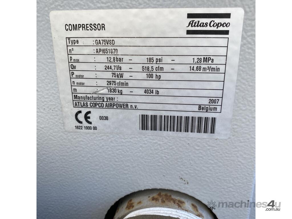 Atlas Copco GA75VSDFF Air Screw Compressor 75kW