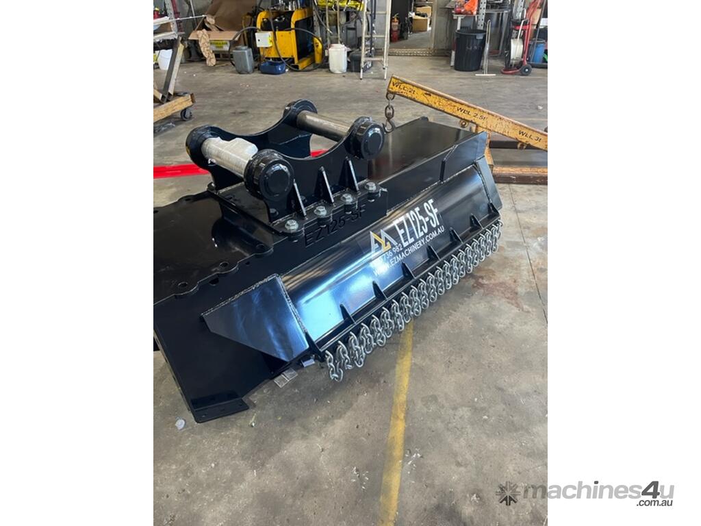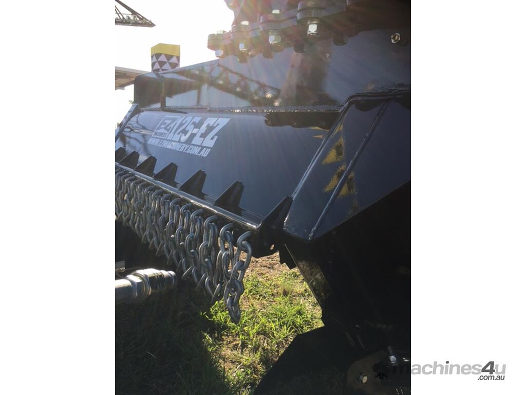 The 125-EZ hydraulic flail Mulcher is designed for use on excavators from 12 tonne and above, skid steer loaders of most sizes and backhoes. Capable of using both standard and high flow hydraulics, the 125-EZ Mulcher is perfect for all types of machinery. the Mulcher comes fitted with a high performance direct drive motor (with no need for aftermarket cooling) and be plumbed specifically to suit the auxiliary of your machine.