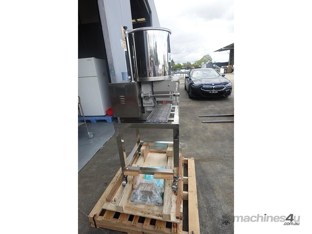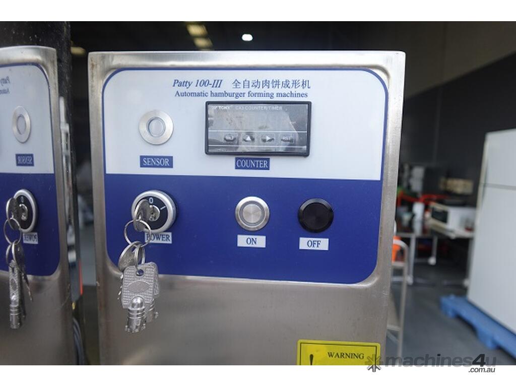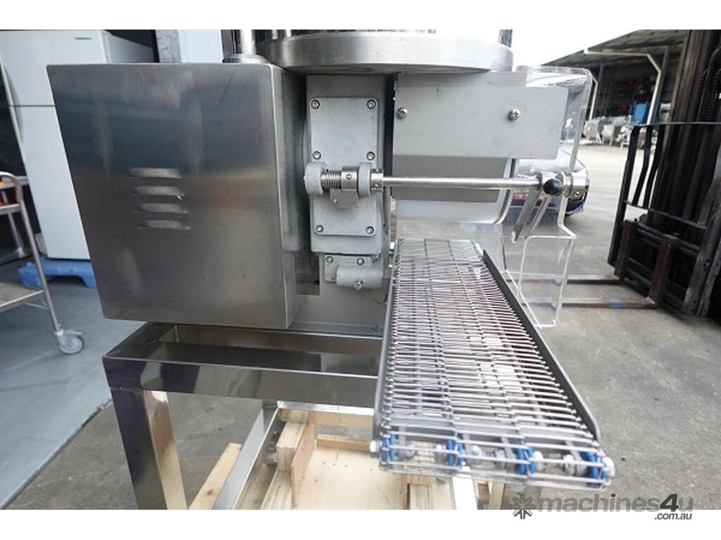 Unit is a stainless steel automatic patty forming machine.