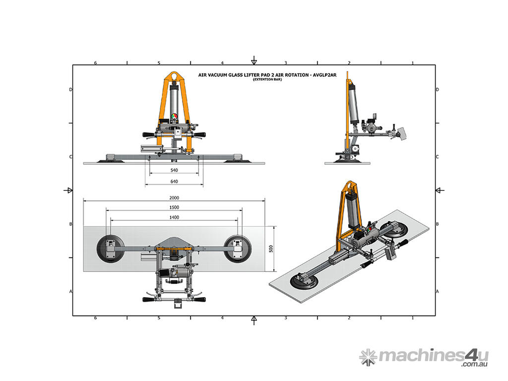 The Auto Rotate Vacuum Glass Lifter AVGLP2-AR is designed to lift, tilt and rotate the glass at wide angles. In addition, the extended bars are equipped to widen the lifting coverage area.