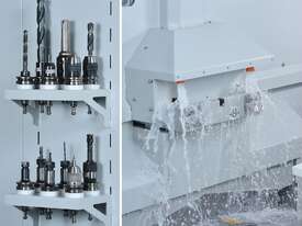Automatic Pallet Changer (APC): This core feature allows for continuous production by enabling the operator to load and unload a new workpiece on one pallet while the machine is actively machining on the other. The pallet change cycle time is 7 ± 1 seconds.