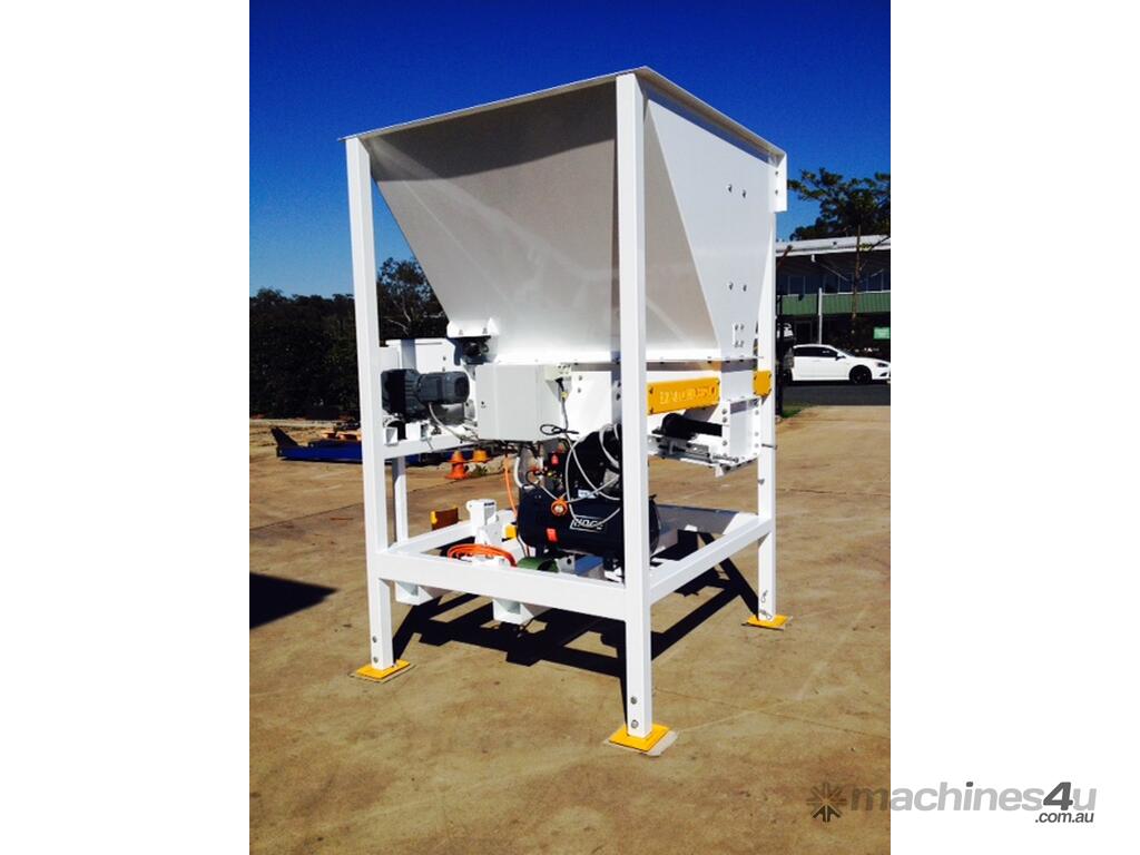 The sturdy Bag-it 15 consists of a 5mm plate hopper with an RHS supporting frame which is 100% Powder-coated after fabrication and comes standard with inbuilt forklift pockets for maneuverability. Complete with its own inbuilt air compressor, all you need to do is add 240v power and the machine is operational (Generator operation is also available).