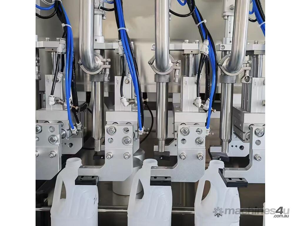 This automatic 4 head servo tracking filling machine is designed for high efficiency liquid filling applications. The machine uses an advanced servo tracking system, allowing the filling nozzles to move synchronously with bottles during the filling process. This greatly improves production efficiency and reduces bottle positioning requirements.