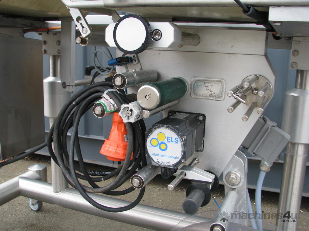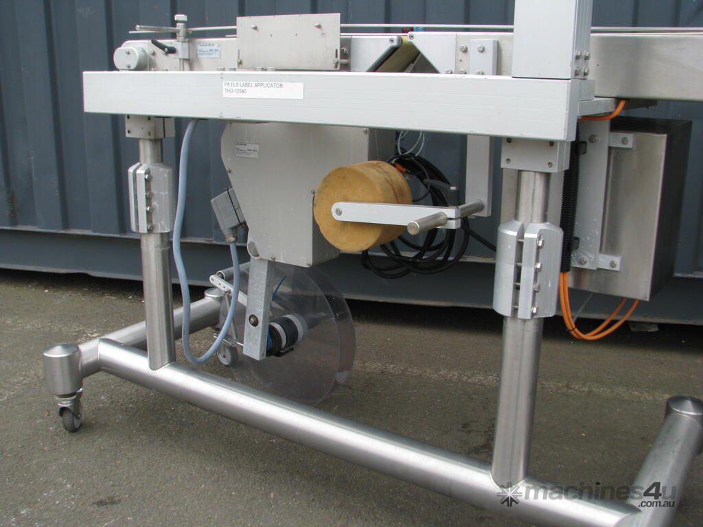 It applies labels from the bottom of continuously fed products and packs of different shapes and materials. You would have your products laying face down on the conveyor to apply.