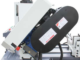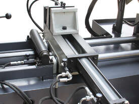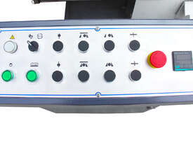 The KANG TBK-11B is a fully automatic horizontal bandsaw designed for high-precision straight cuts on larger workpieces, making it ideal for industrial metalworking applications. The bandsaw features a robust, torsion-resistant dual-column frame that minimises vibrations and ensures stable, accurate machining. The hydraulic material clamping for secure holding, hydraulic feed with an adjustable stop for controlled cutting, and a bundle vise that allows for efficient cutting of entire material bundles to specified lengths. The saw frame lowers hydraulically with infinitely variable speed control, and it automatically returns to the home position after each cut cycle. Blade speeds are adjustable in three steps (27, 45, 69 MPM) to suit different materials, and the rigid saw blade guides can be easily adjusted for various workpiece sizes. The user-friendly control panel is mounted on a cabinet for easy access and clear visibility during operation. Standard inclusions comprise a high-performance coolant system to extend blade life and improve cut quality, a mobile material support base, a work lamp, and comprehensive operator instructions.