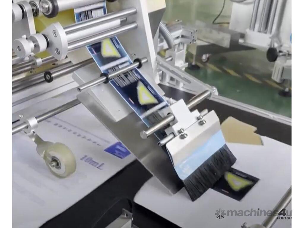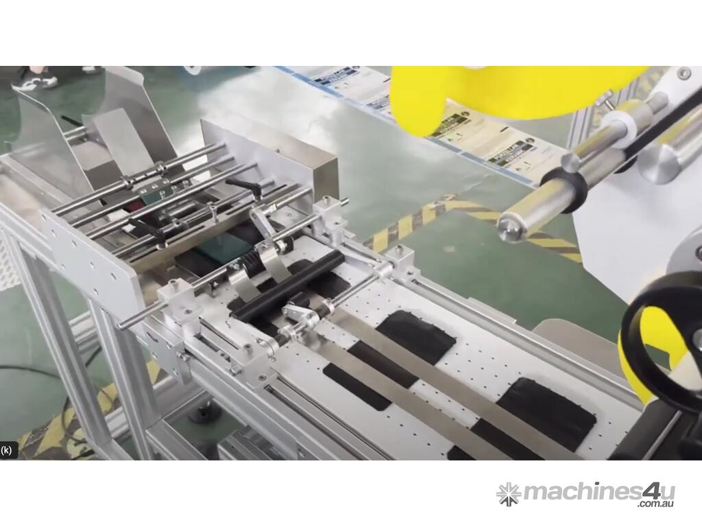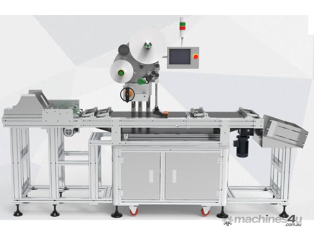 This automatic friction feeder with integrated print and apply labelling is designed for businesses needing accurate, repeatable labelling of flat products with minimal manual handling.